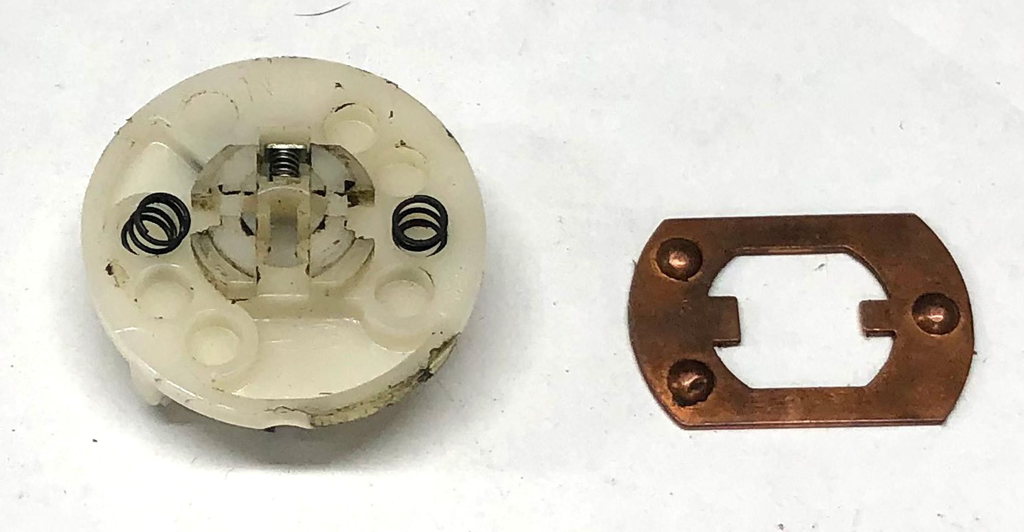 1. If you look at the photo of the stator with the contact plate off, I've got two springs there but that's just a guess. There are seven or eight little buckets where you can put a spring that size. Are there only two springs? Or is there a third, and they would be positioned to correspond with the three raised divots on the copper contact?