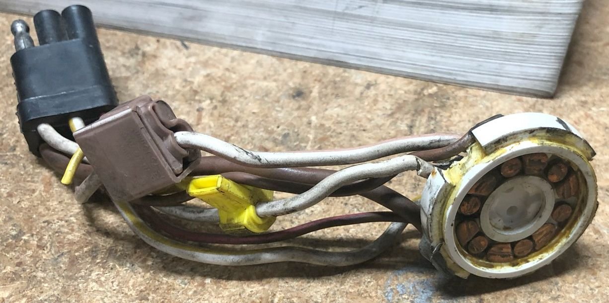 Rotor - contact side (mates with the stator) Rotor - big spring side (mates with the mechanical portion of the ignition lock) Stator - contact side Stator, wire side Rotor with copper plate detached