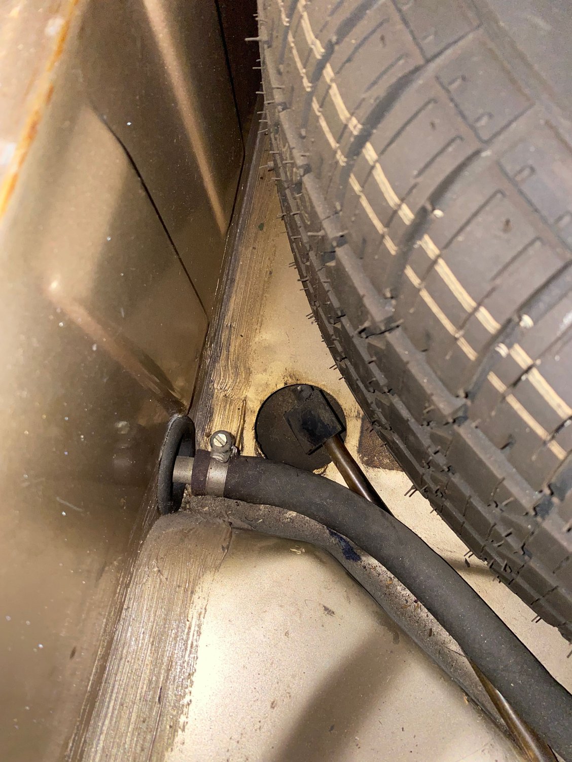 There is however, a disconnected hose that comes from under the narrow fixed trunk floor panel. I’m assuming it’s for water drainage from the trunk lid recess? There’s no fuel smell in the trunk or when driving.