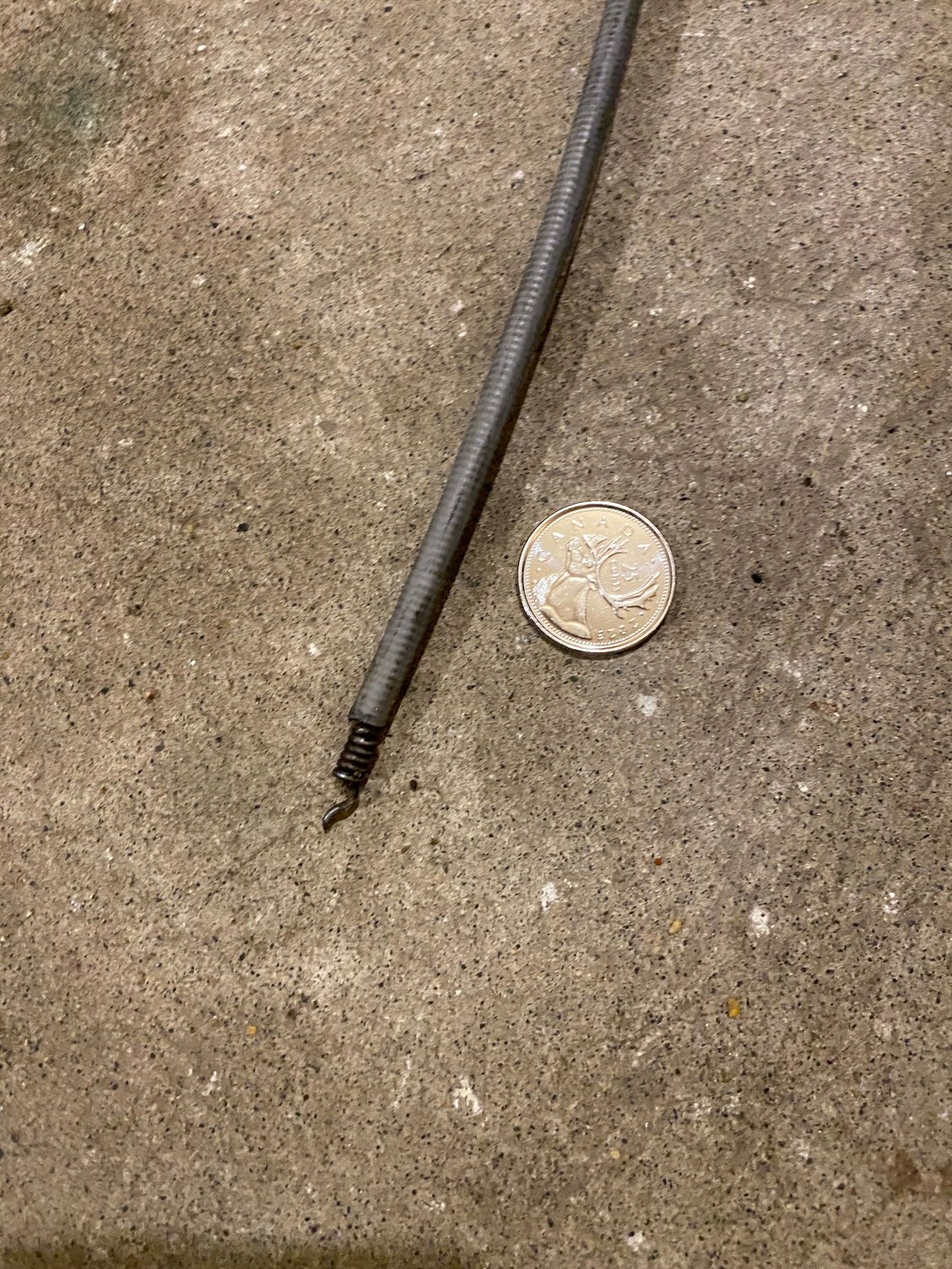 it originally came with a nylon brush end that I cut off flush. As noted above, I managed to insert that almost 3’ but couldn’t get it in further than that before reaching a hard stop.