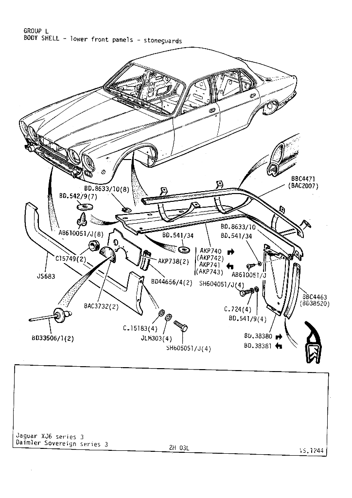 The removable, semi-rectangular panel I was referring to in earlier posts, and the one which has the rubber seal, is situated aft of the front wheels. Part number BD38380 and 81 in the illustration below. The rubber seal is BBC4463