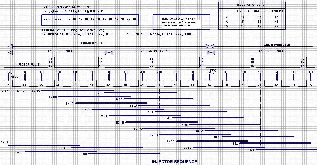 The information below shows the injector sequence. I made this a long time ago to check something when fitting an aftermarket EFI system.
