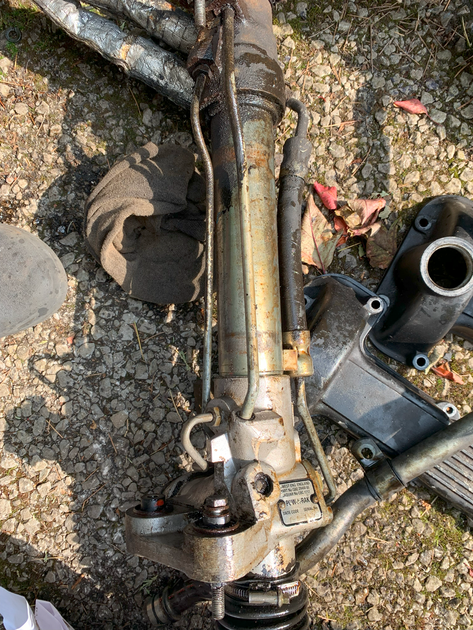 The rack is an Adwest. I found my old hose and it is the same but the rubber hose part is a smaller external diameter on the 'original' ... what is even more scary is that I have a picture of it too before I sent the rack out for refurb, I don't have any from when it came back all shiny unfortunately. The pipe will not sit in the location in the image without fouling the engine sump - and yes I replaced the engine mounts with genuine ...