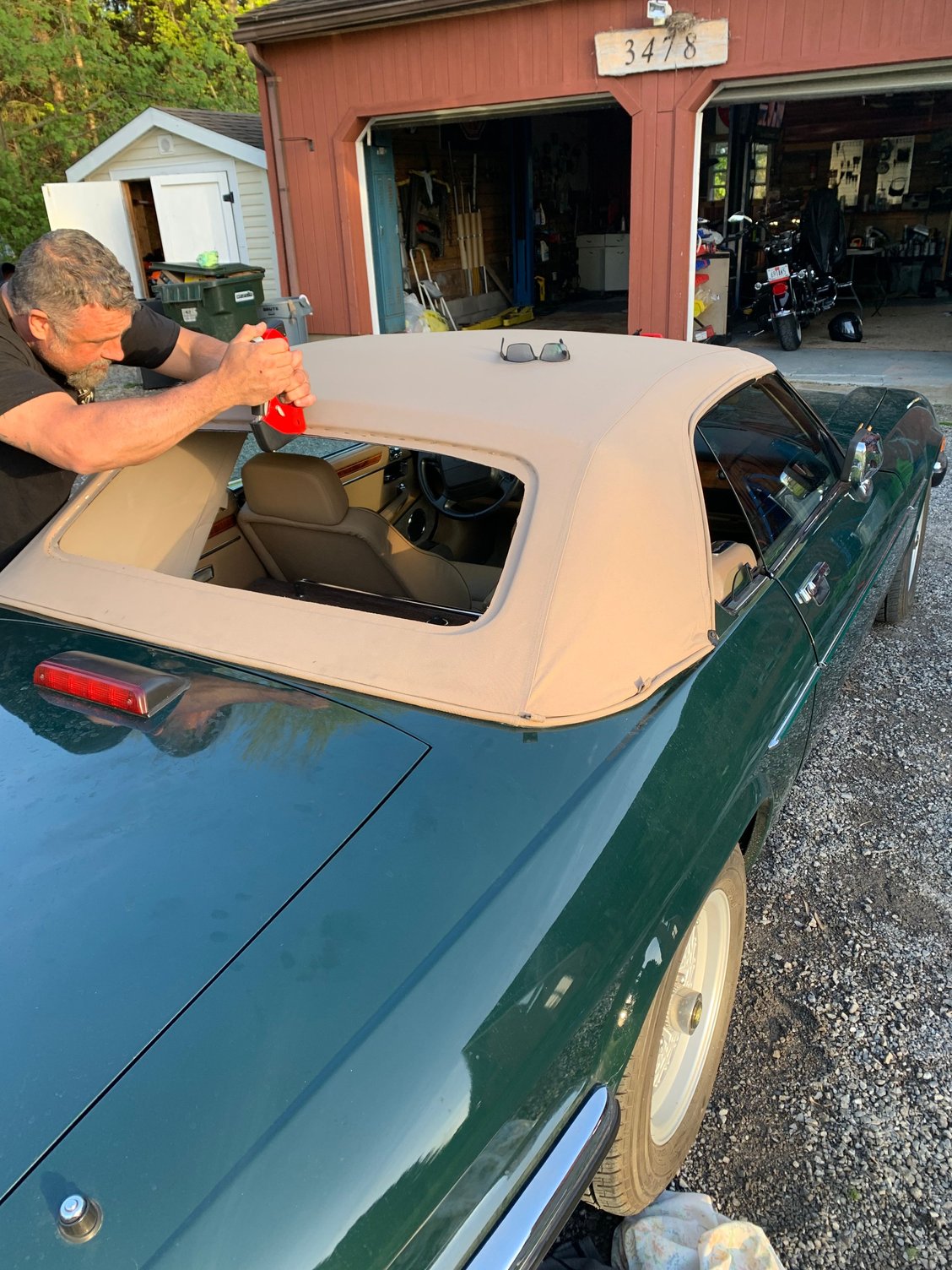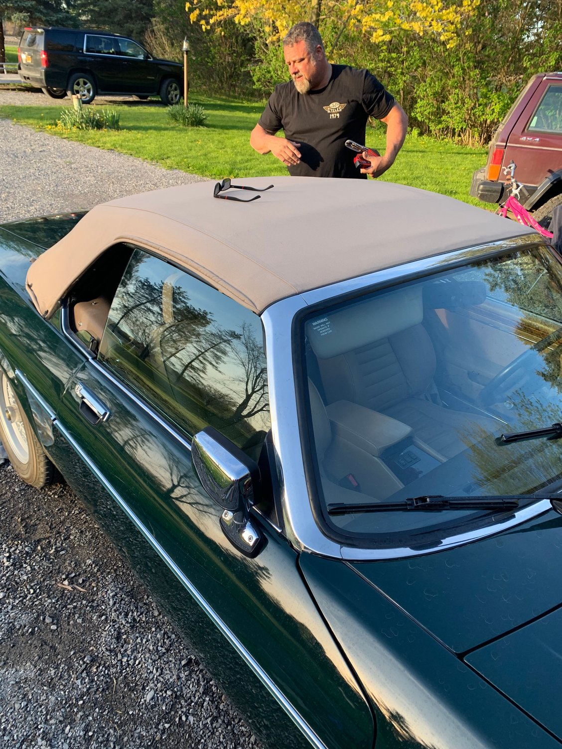 I'm wrapping up the replacement of the canvas on my 1990 XJS. I've been taking my time stretching the canvas. At this point I'm just down to doing the front stapling and molding (should be easy) and the rear window. I've gone through every post I can find, they were extremely helpful. The rear window install has been the step I'm most apprehensive about and going through the posts the details seem to fade out at this part. Does anyone have any tips for cutting, how much excess to start with, installing the new outer seal or pics from this step... ? I've purchased the sealant and primer. At this point it's just taking the jump into doing it. This is definitely a doable job overall if anyone is considering it. Taking your time, having a friend (or brother in my case) to assist with certain steps and looking at past posts are the biggest assets. Also, the one mistake I did make (so far) was not protecting interior and exterior parts when working with the contact cement. Highly recommend as the stuff is drippy and strong.