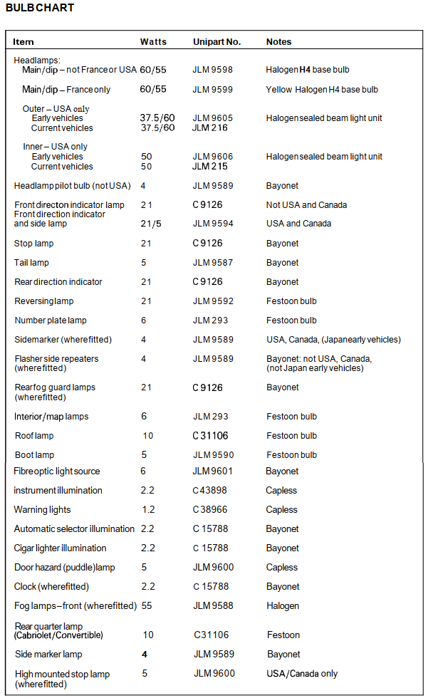 For a 1989 XJS, does anyone know the type of bulb to fit the cigar lighter, plus the two bulbs that illuminate the 4 push-switches in the central lower dash i.e. hazards' switch, heated window switch and other two switches that switch on and off the interior lights? I want to replace them with LEDS. It would make my day if someone were able to tell me the exact type of bulb (I've search on the net and can't find one that matches the precise size of the old one).