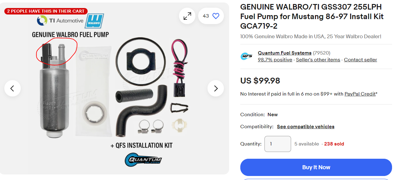 I use this Walbro over sized pump, it's not a direct replacement but can be made to work with a few mods... The the point is that the right pumps have a barb like the one shown.
