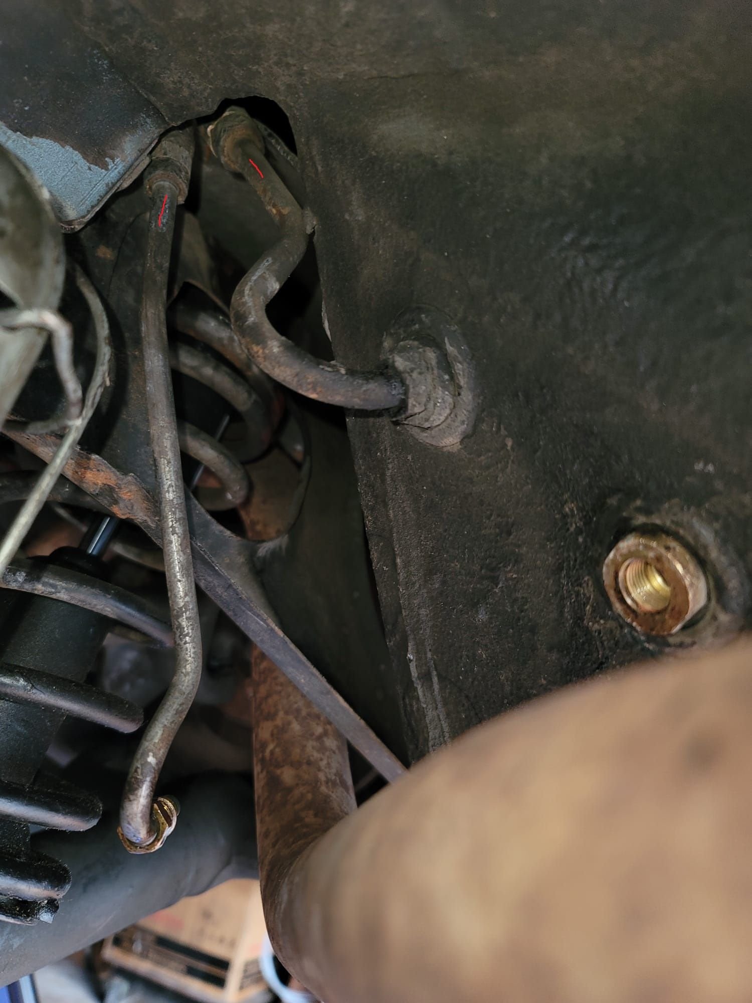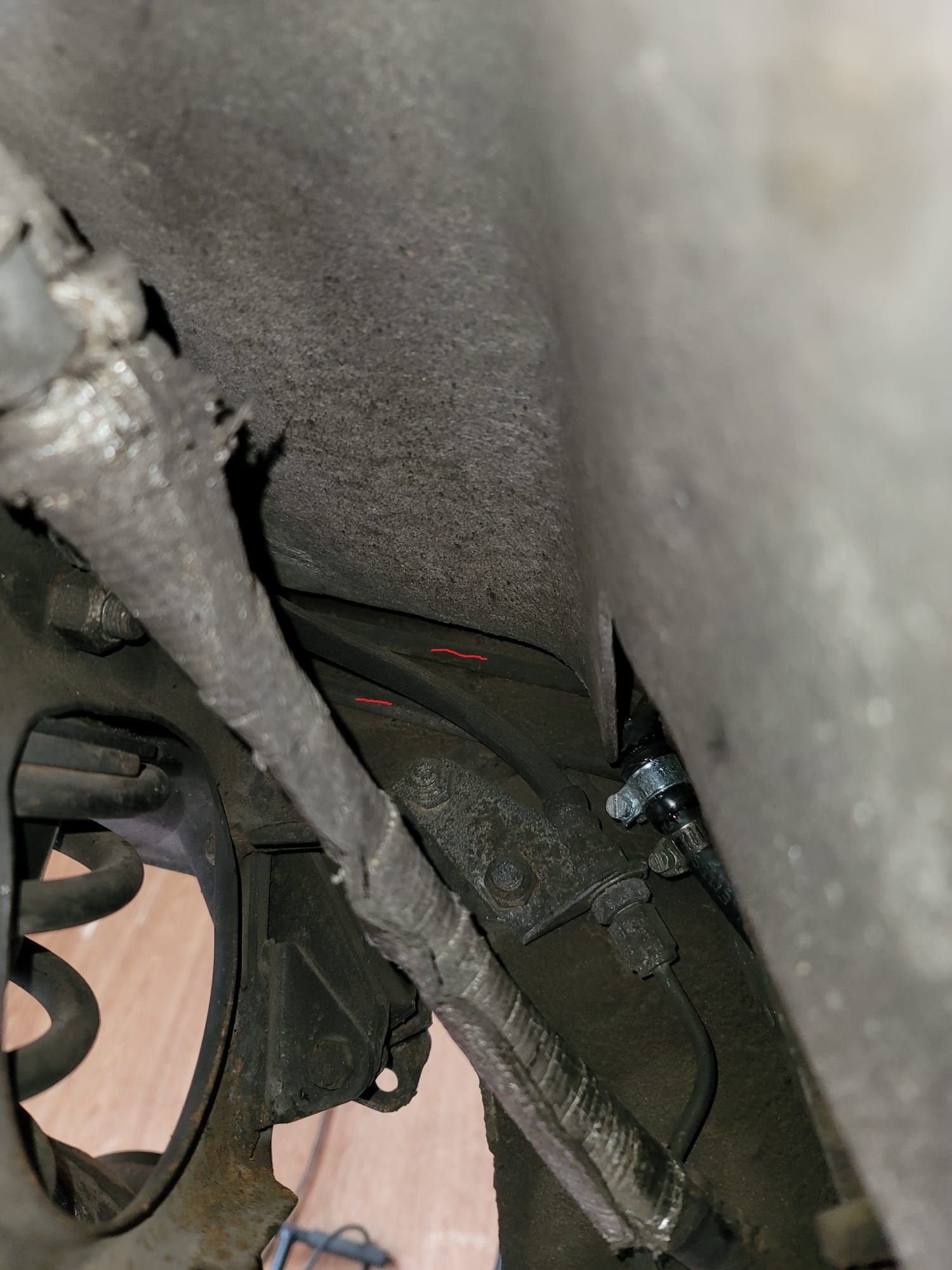 Did anyone replace those lines? (my manual calls them "under-floor pipework"). The rubber part goes into the gap between suspension and the body, on the other side it is a metal pipe again. If I wanted to replace just rubber part - it looks like I would need to drop the whole rear suspension. The metal line that continues is bent and attached to the body in many places. Perhaps I could detach the whole line from body, re-bend it in some way so that I can push it through the gap to get access to the rubber part?
