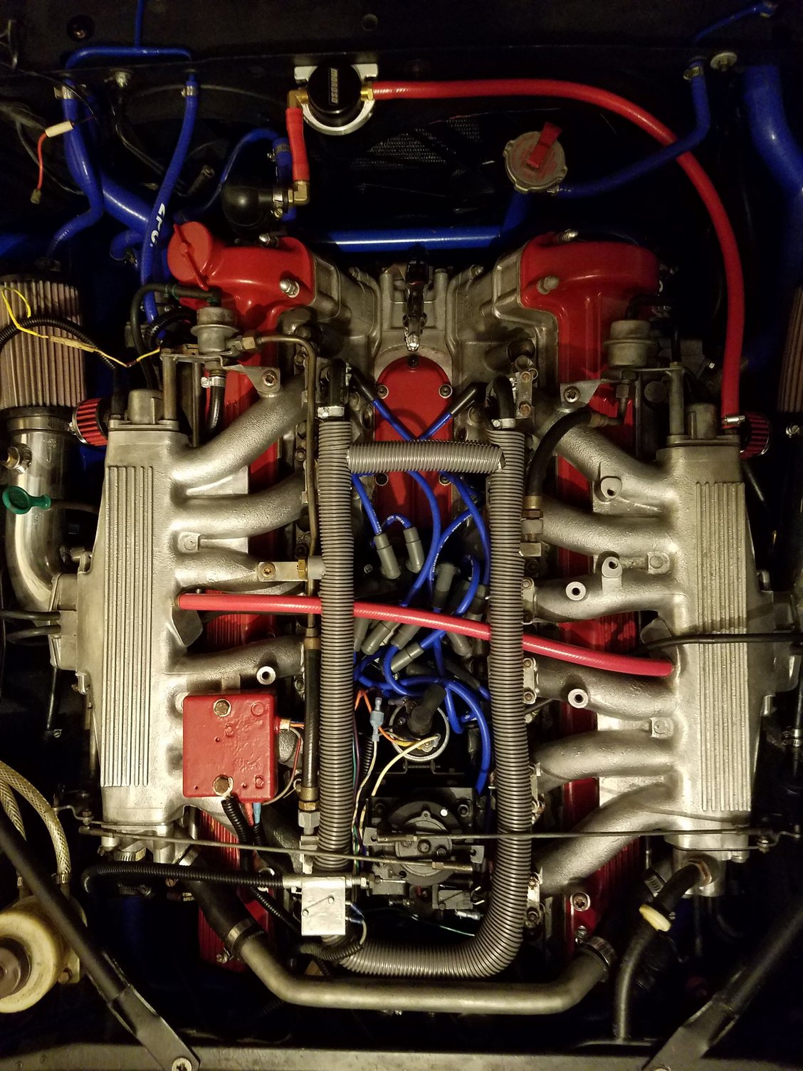 Very clean bay you have there! Blue cooling, red heads and vee, unique! It looks very serious. Is the fuel rail cover insulative?