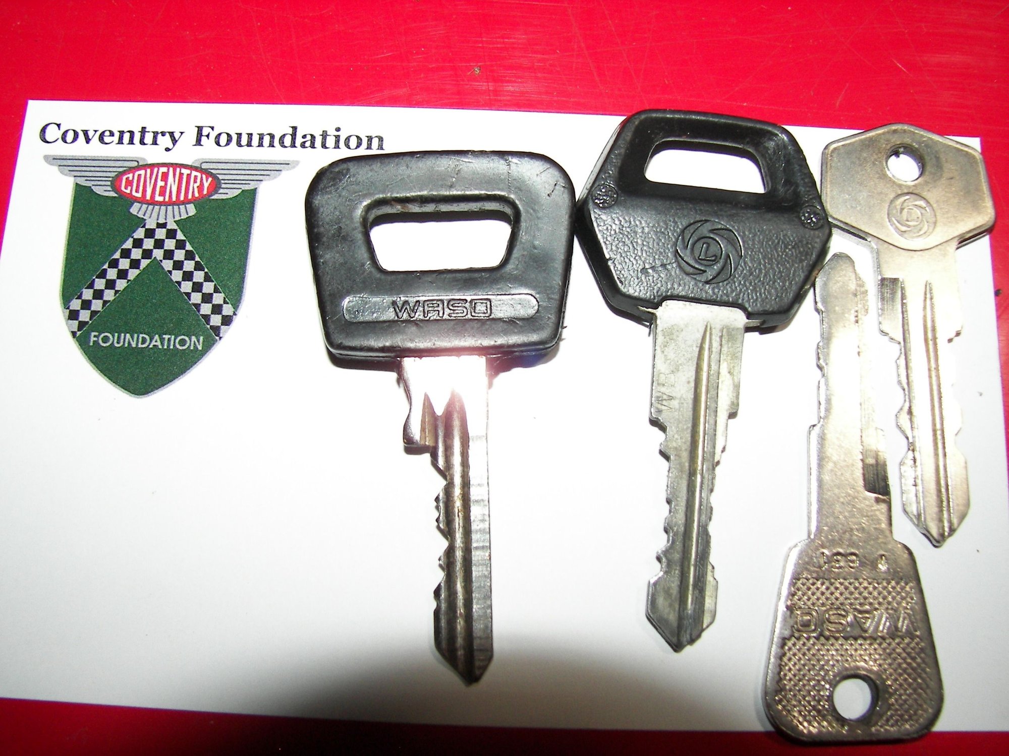 An Ignition key. These were made by WASO with a black plastic WASO-logo'ed sheath