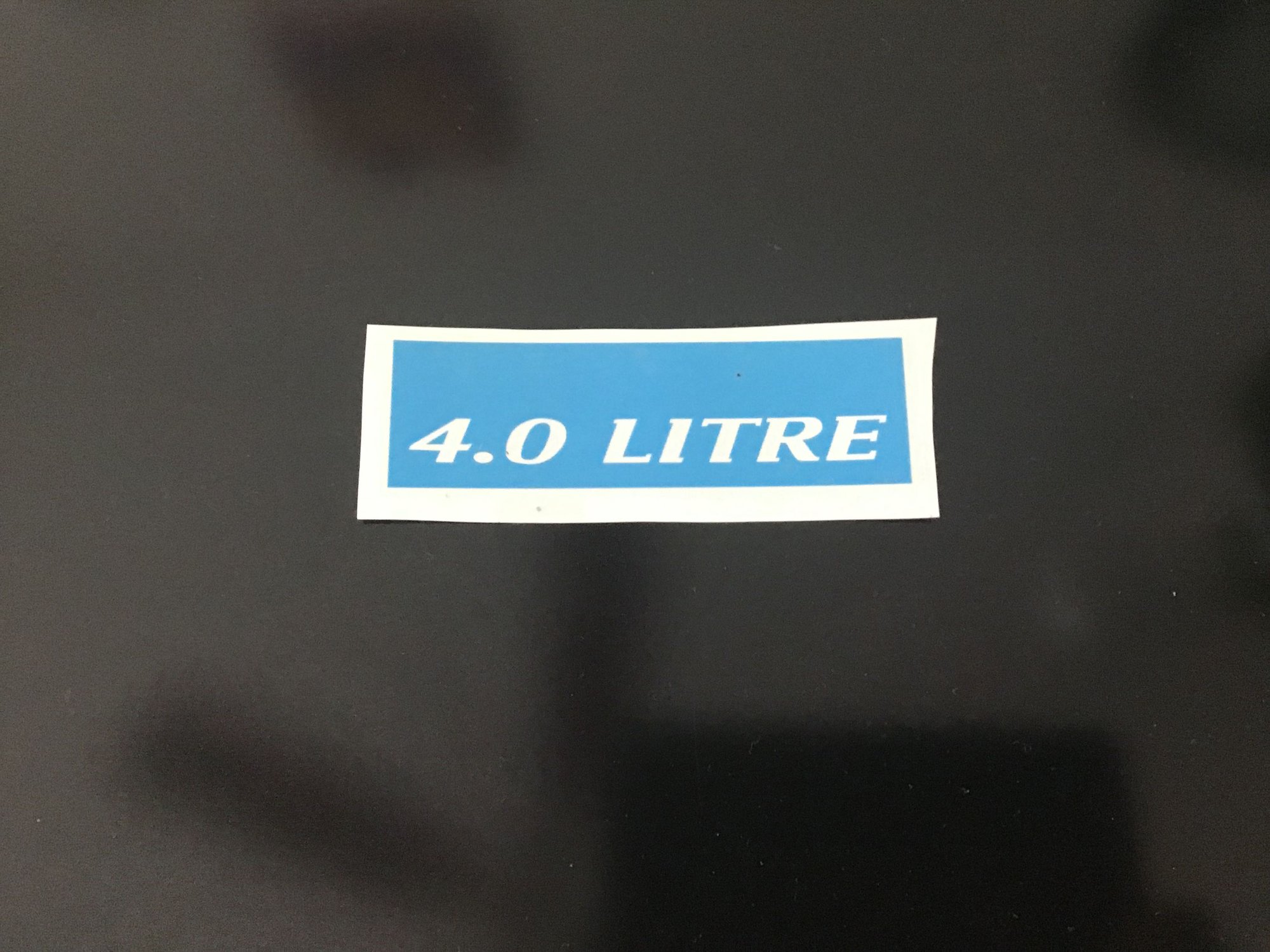 4. Found a local sign maker and had him program on his computer a sticky stencil for the 4.0 LITRE (see attachment) FANTASTIC JOB BY THE SIGN MAKER.