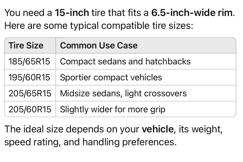 I've got 225/60/15 "Forceum Hena A/S Performance" tires on mine, got them on fleabay at $320 for the whole set!