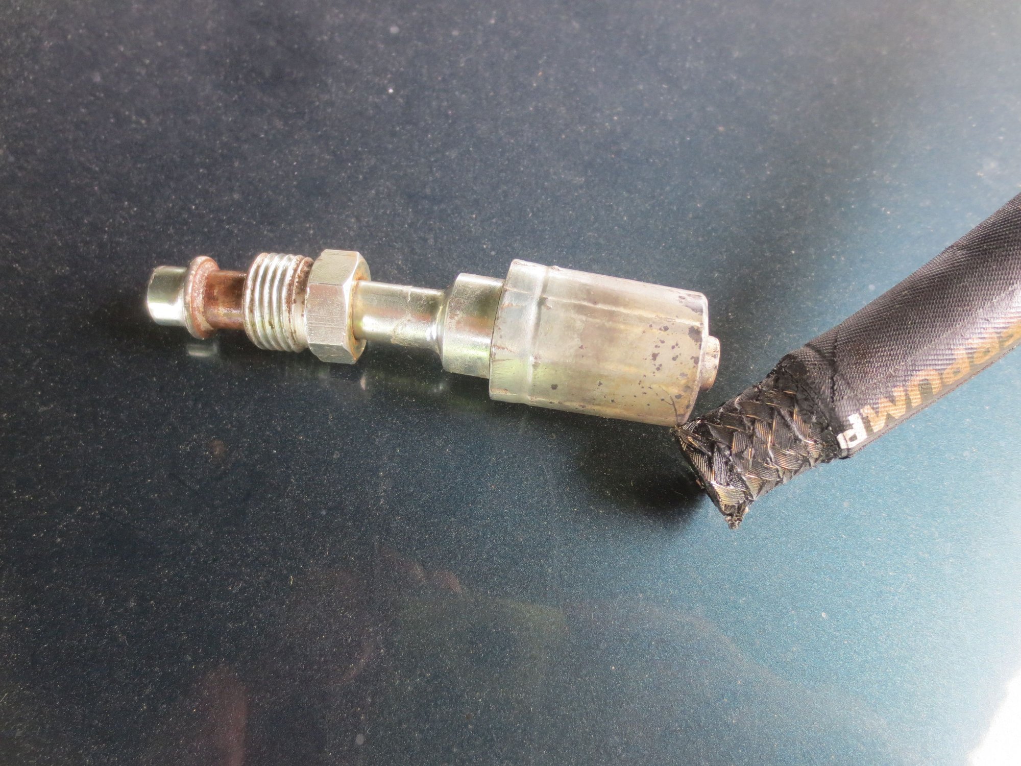 The proper swage on the US supplied LHD high pressure power steering hose that I adapted.