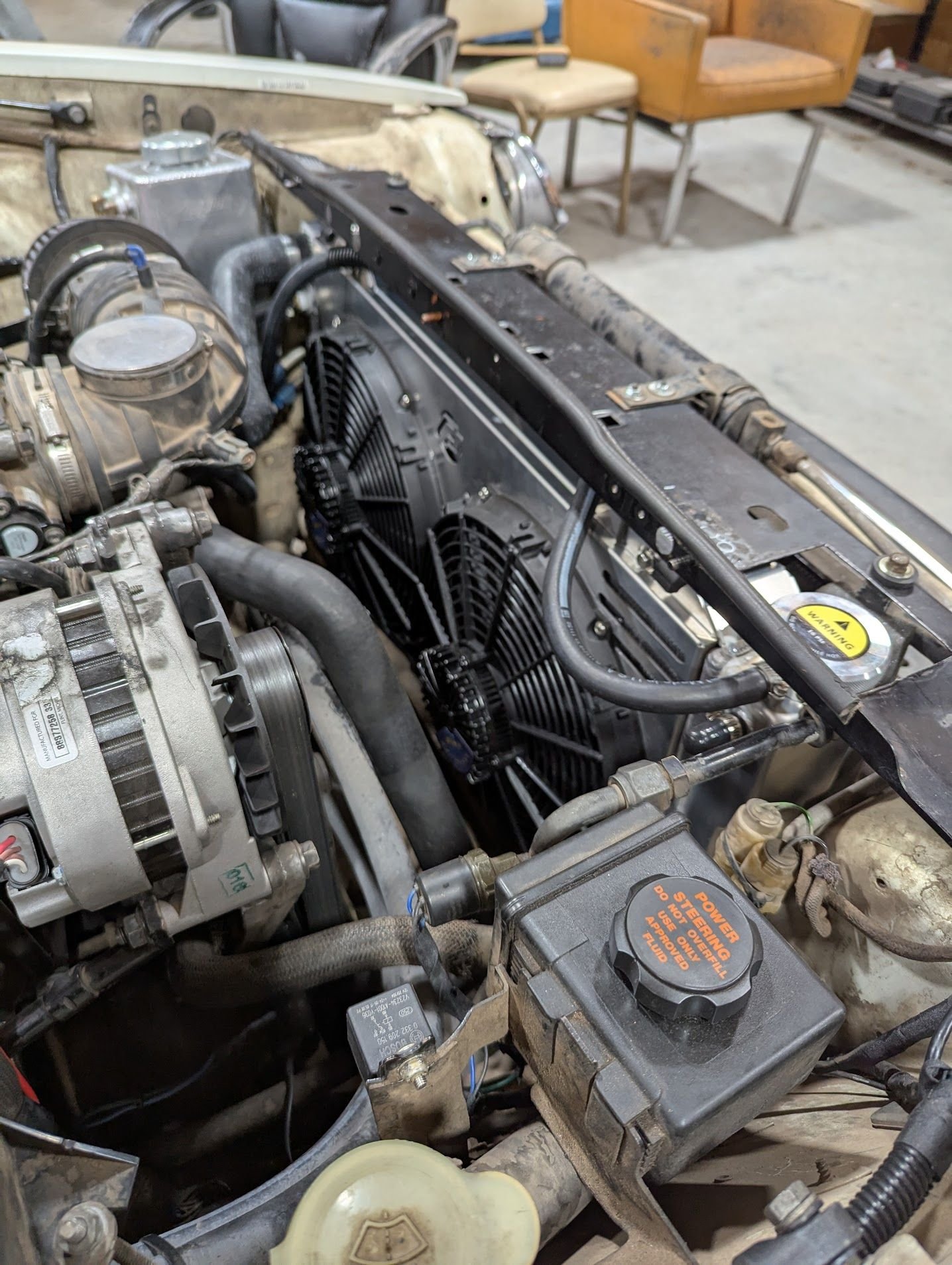 Even among v8's the LT1 has odd cooling behavior but between the decent aluminum radiator and good fans and shroud the improvement was impressive vs a large copper/brass unit and a pair of strong single speed fans.