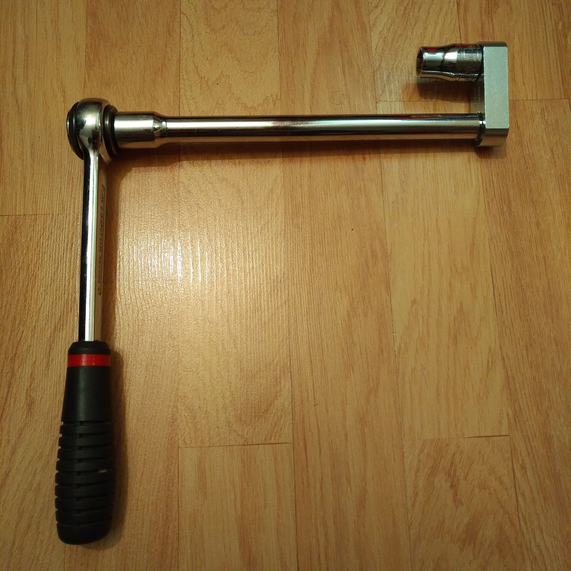 😂 I love this contraption! I will attempt tomorrow. I was searching for a U shaped socket adapter/extension, but couldn’t find one, surely that would work for many situations, like this? Or am I missing an obvious physics issue here..