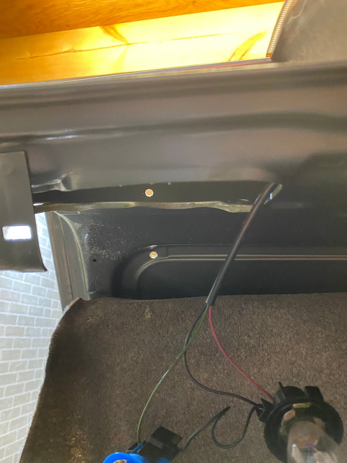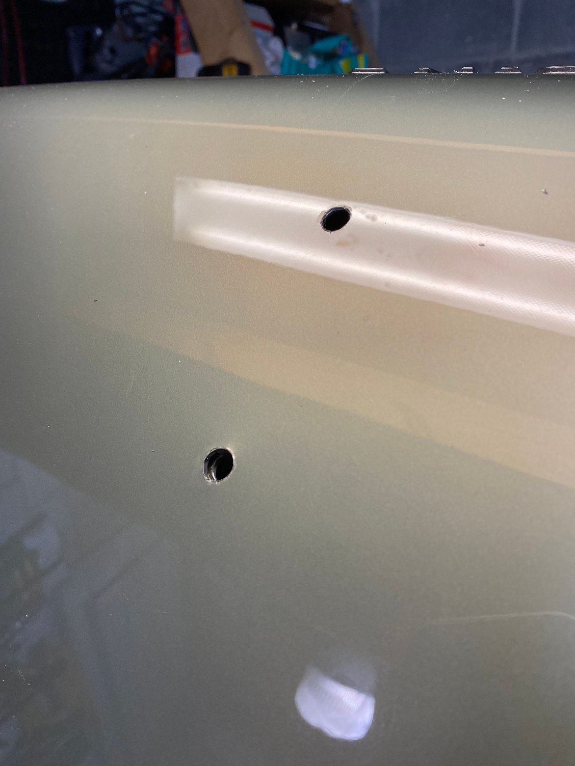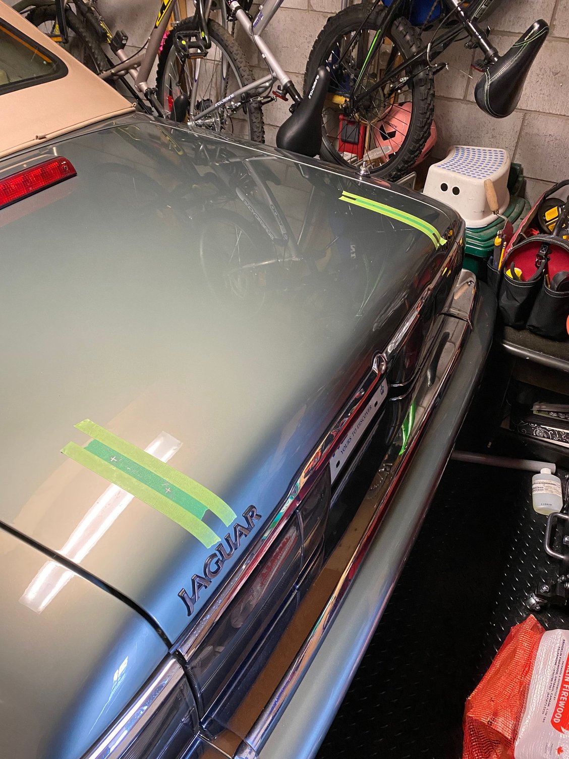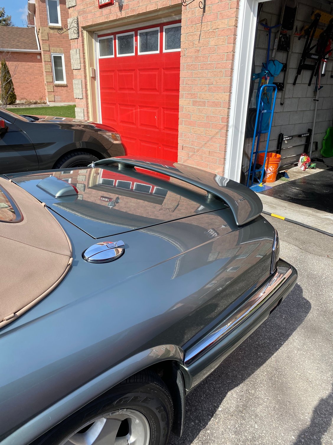 The spoiler arrived in British Racing green quite damaged. I had repaired and painted for $700 (it’s a lot, but not if you know how much I love my car) These are the two nuts each side has for fixing to trunk lid I had to re-thread the nuts with this tool, as paint and corrosion had ruined them. Re-threading You’ll have to buy a sponge neoprene sheet to cut to size to work as a gasket between the spoiler and the trunk. OEM gaskets are impossible to find. One side of the the neoprene should have adhesive allowing you to properly adhere it to the spoiler Measuring the holes, check to fit. Use painters/masking tape, for writing and drilling to stop bit slippage. Remove outer tail lights and interior carpet molding to reveal interior trunk Drill holes and pray you measured right Pray again you measured right (look below for measurement instructions) Prime with rust inhibiting zinc enriched paint, both inside and out, then paint with colour match finishing spray. Not doing this will cause rust, as primer dries porous Use 1.0 M6 free spinning washer nut. Very difficult find, but these will not gouge your paint when installing. And yes… a spoiler does make this car look even better.
