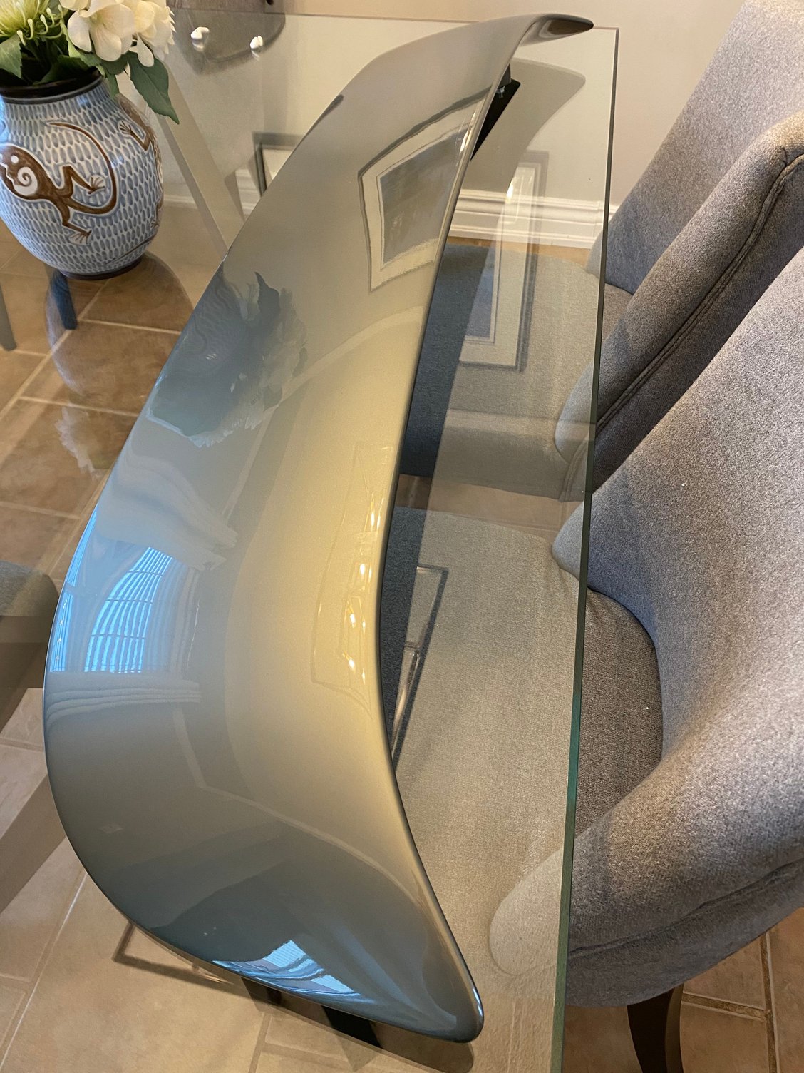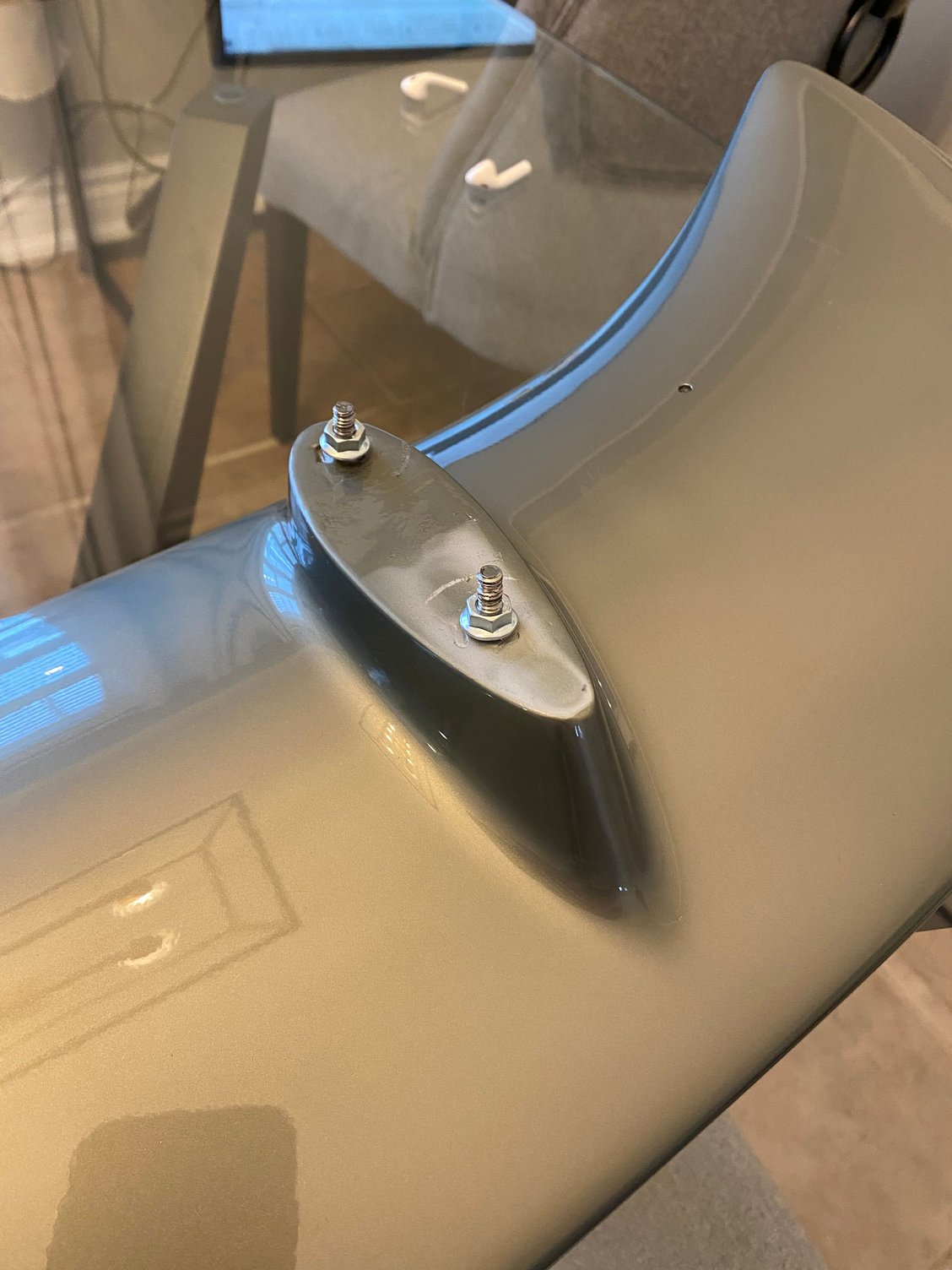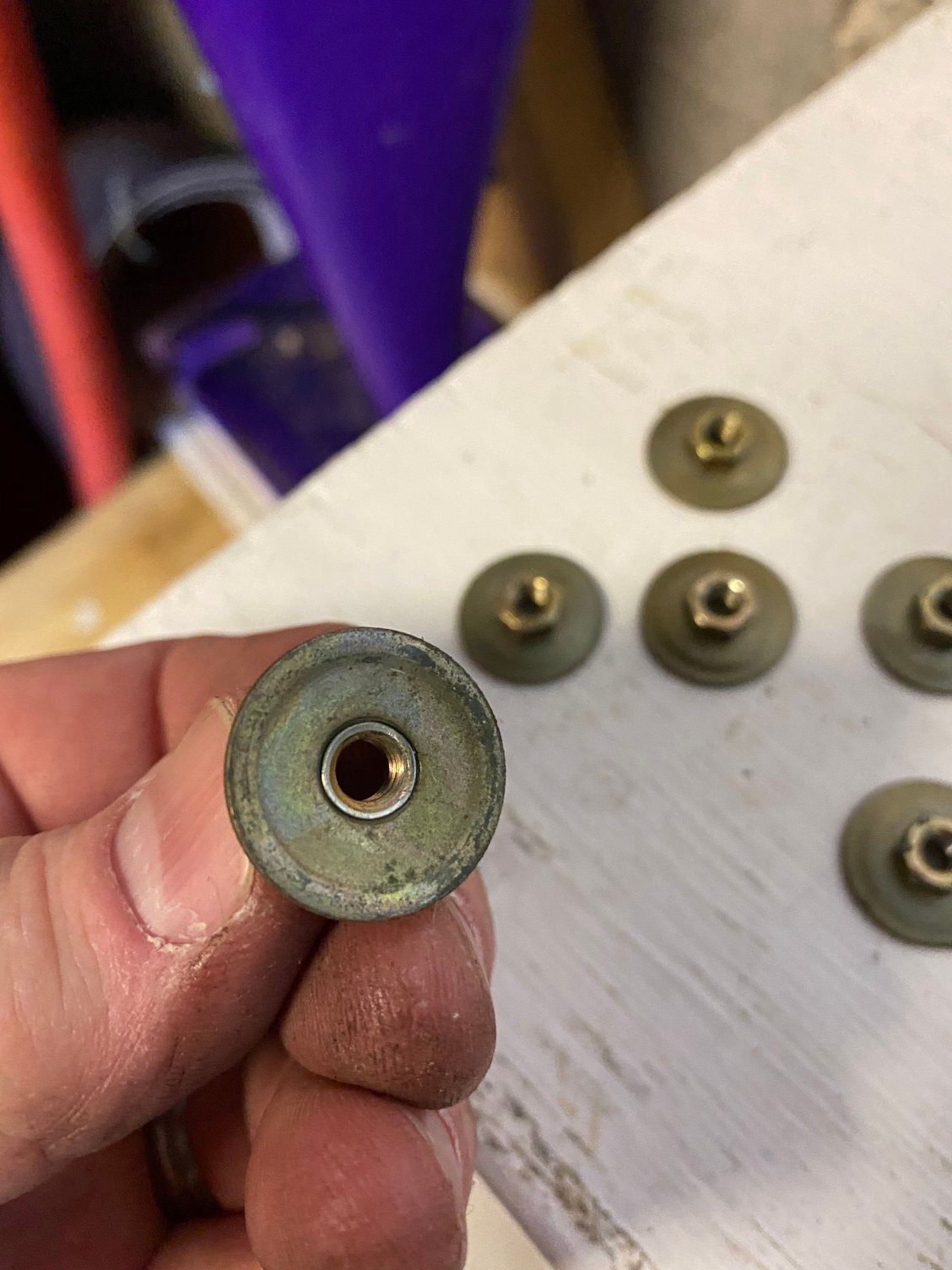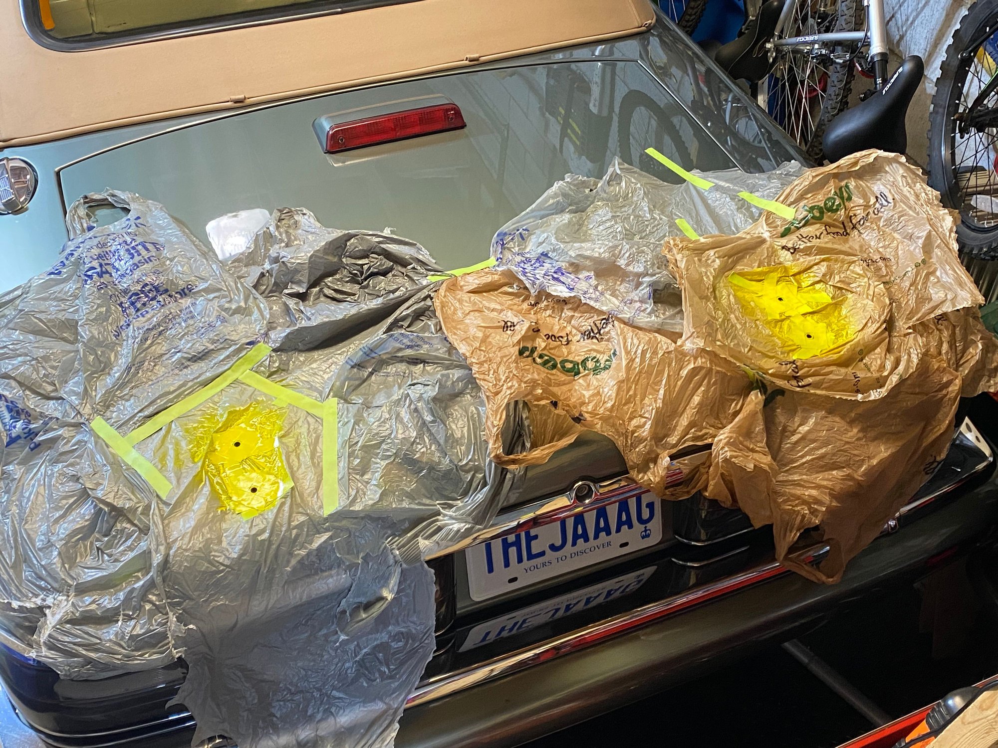 The spoiler arrived in British Racing green quite damaged. I had repaired and painted for $700 (it’s a lot, but not if you know how much I love my car) These are the two nuts each side has for fixing to trunk lid I had to re-thread the nuts with this tool, as paint and corrosion had ruined them. Re-threading You’ll have to buy a sponge neoprene sheet to cut to size to work as a gasket between the spoiler and the trunk. OEM gaskets are impossible to find. One side of the the neoprene should have adhesive allowing you to properly adhere it to the spoiler Measuring the holes, check to fit. Use painters/masking tape, for writing and drilling to stop bit slippage. Remove outer tail lights and interior carpet molding to reveal interior trunk Drill holes and pray you measured right Pray again you measured right (look below for measurement instructions) Prime with rust inhibiting zinc enriched paint, both inside and out, then paint with colour match finishing spray. Not doing this will cause rust, as primer dries porous Use 1.0 M6 free spinning washer nut. Very difficult find, but these will not gouge your paint when installing. And yes… a spoiler does make this car look even better.