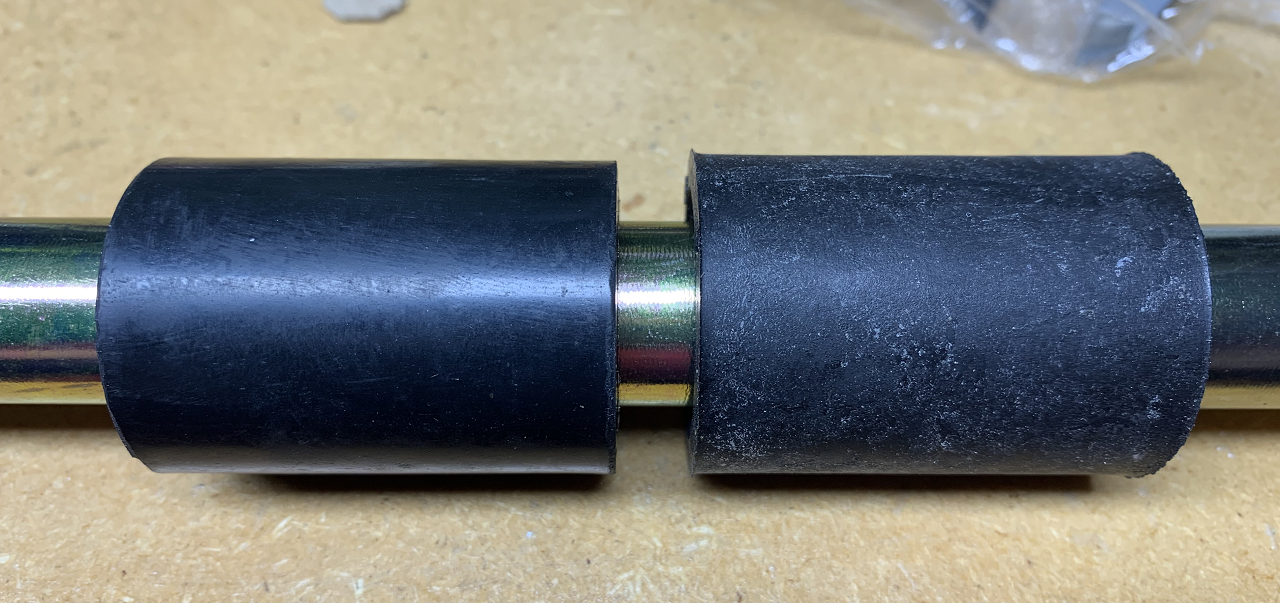This is the reason that aftermarket lower wishbone bushes do not last; as the rubber used is not good enough to accomodate the suspesnion movement and just tears itself to bits. As well as the welded end on my pin, I attach a photo of an aftermarket bush after 4 weeks use! We all only learn the hard way!