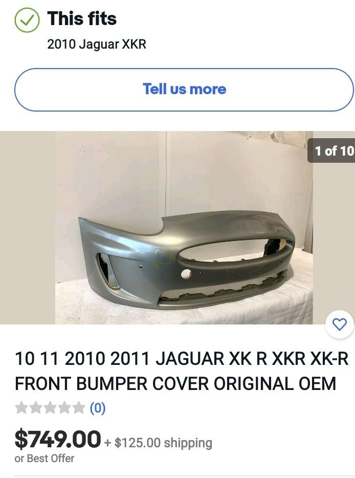 So apparently, there is no stock of front bumpers in the US and Jag won't say if they'll make more. I got sideswiped a few weeks ago and it messed my bumper up. Front bumpers were unique to 2010 and 2011, so for those of you that have that year, take especially good care of them!