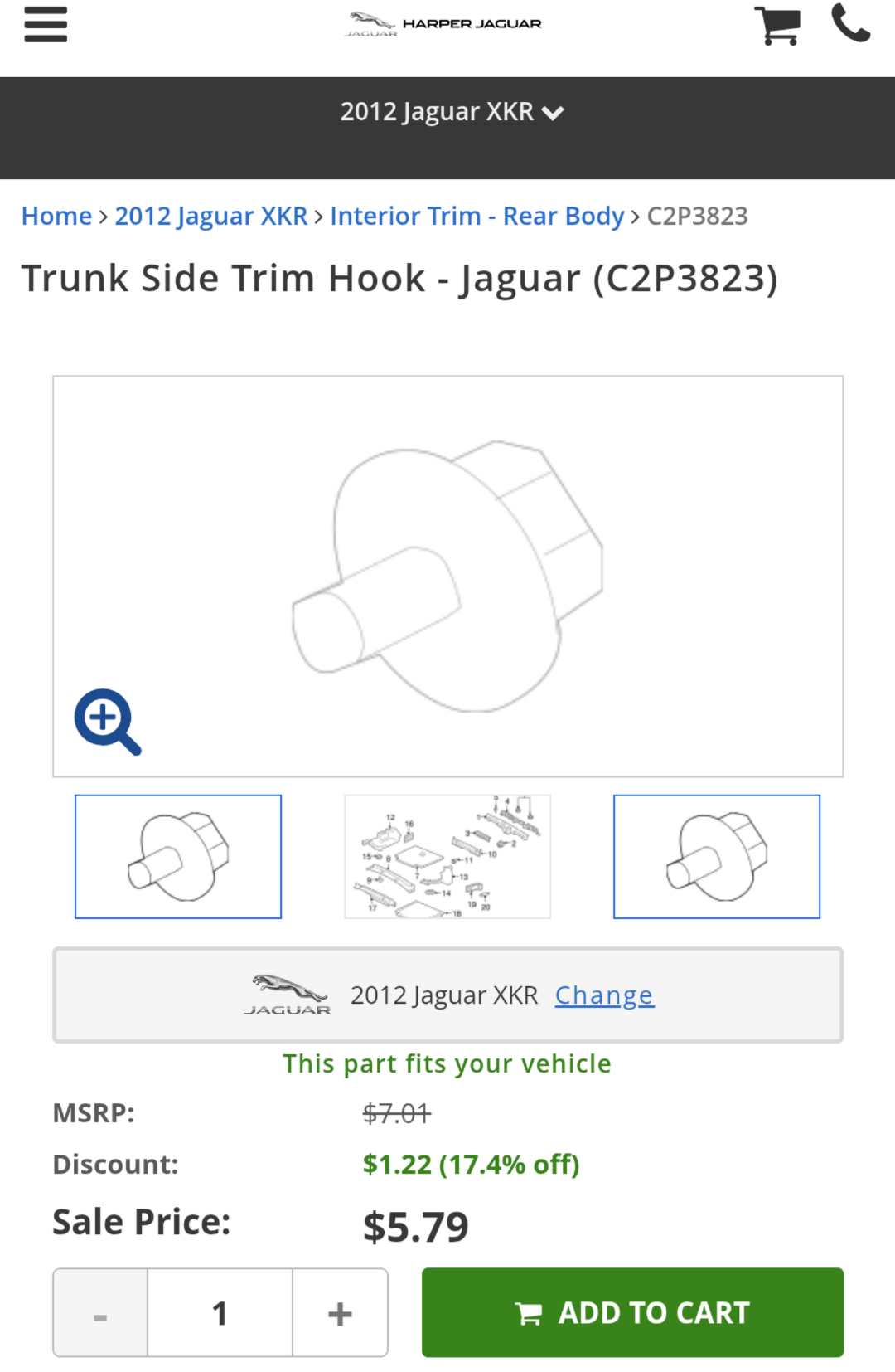 Any idea what the part number is for this and if I can buy it online? There is a number printed on it but when I Google it or go on a Jaguar parts website, it produces no hits.