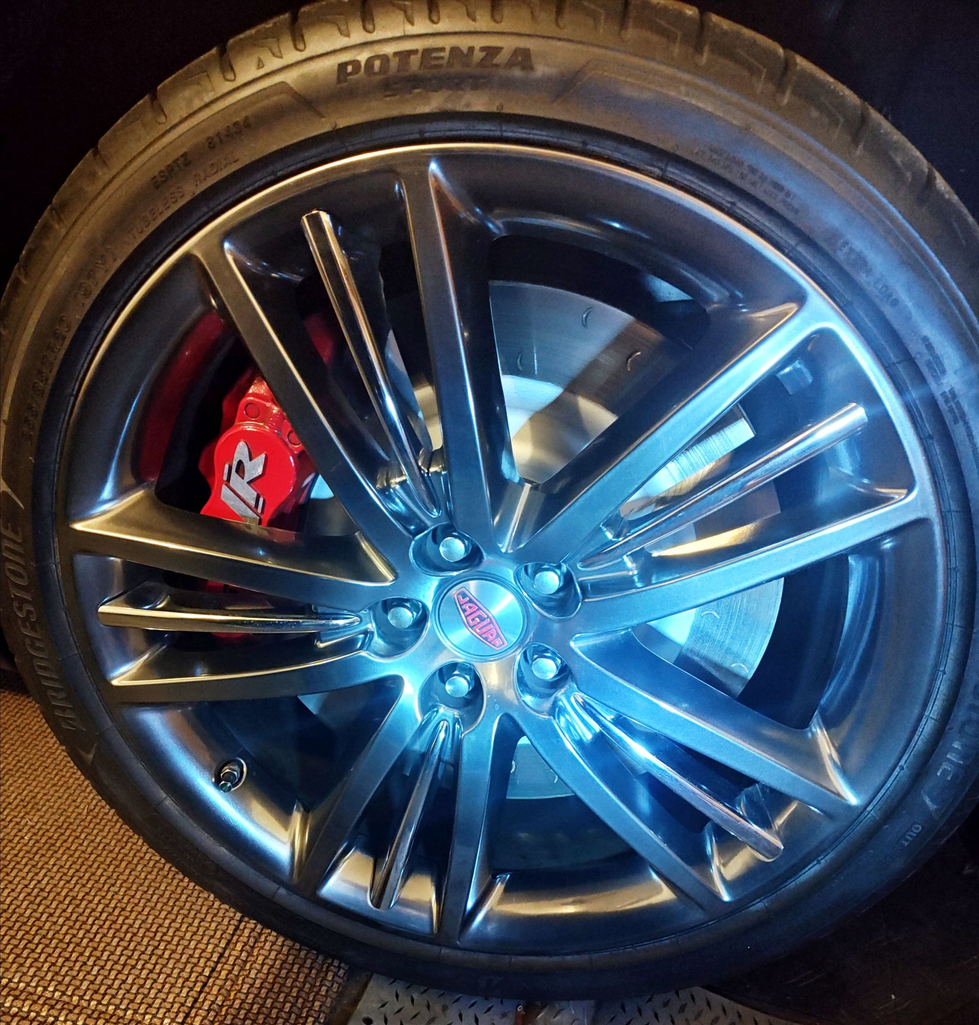I just got my XKR back from my independent ASE-Certified technician who installed replacement Centric Alcon rotors and Brembo ceramic pads. I'm still bedding in the new pads, and don't have enough miles on them to say much. So far, they're quiet and the pedal feels the same as the original rotors and pads. But the Brembo ceramic pads leave light grey dust, which is much less noticeable than the black dust from the OEM pads. Hats are painted matte light grey.