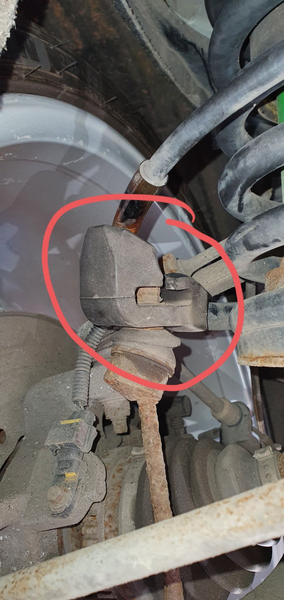 my dad's 4.2 XKR has a split rear bump stop, that is causing the handbrake cable to rub on the drop link bolt (sway bar link for you Americans)