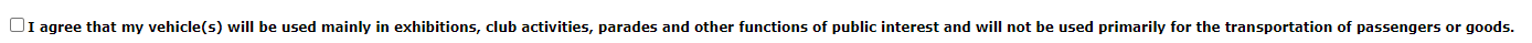 I don't use my XK for exhibitions, club activities, parades or an other function of public interest. I drive it for my own and my wife's enjoyment, period. I am not going to lie on the application by checking the box shown.