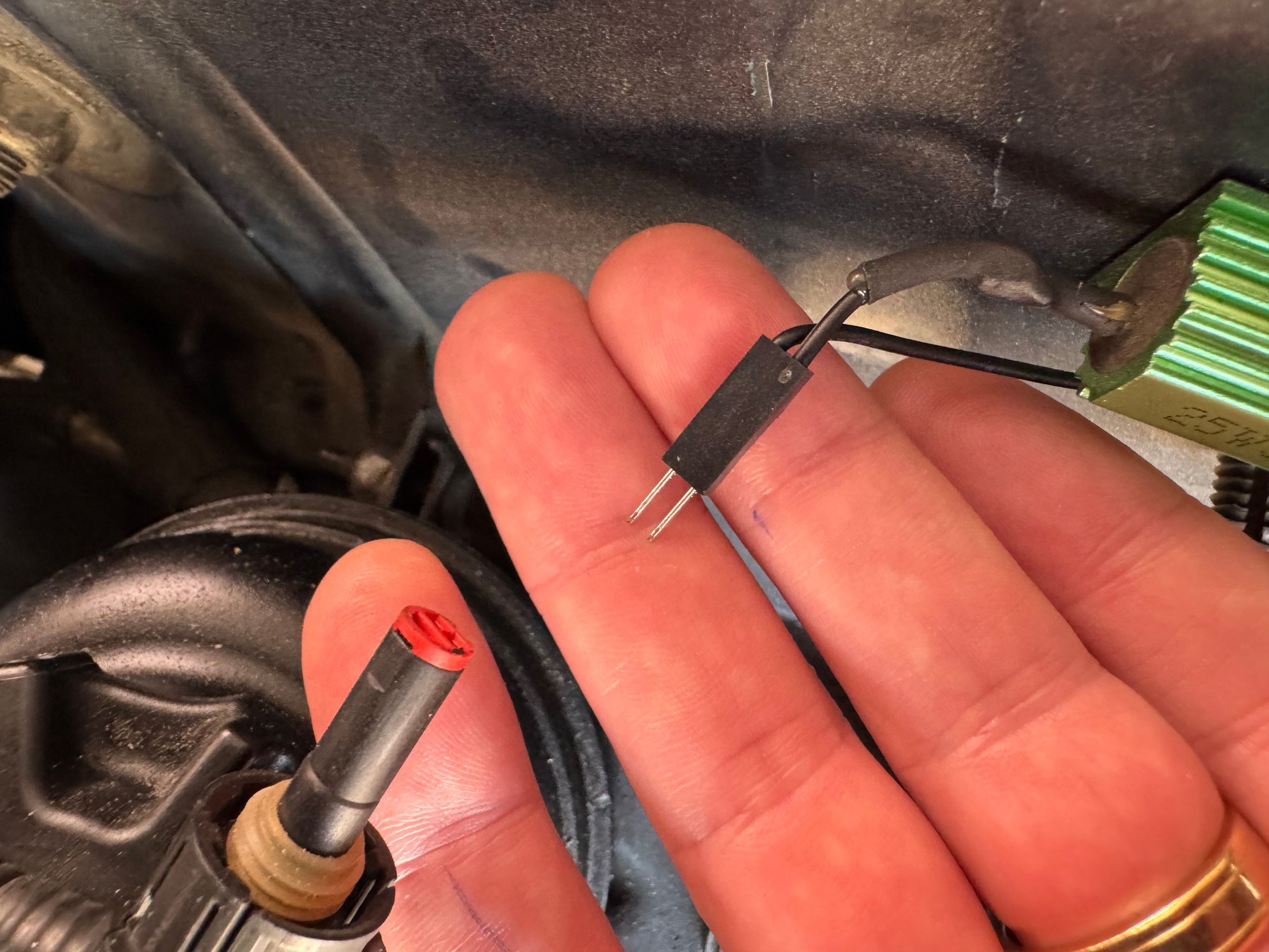 I read somewhere that the suspension female plug was based on a jumper spacing like you get on pc motherboards. So an Amazon order and a bit of swearing later (I’m no electrician) job done. The male pins are very fiddly, you need a proper crimp tool and a resistor.