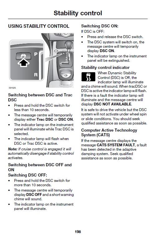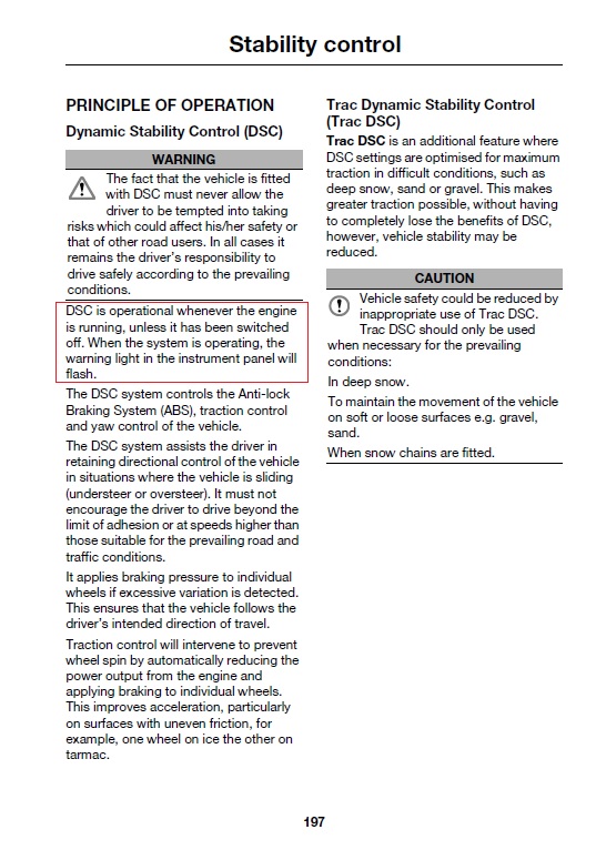 Switching the engine off and then on again, will always revert DSC status to DSC ON, regardless of which mode is selected.