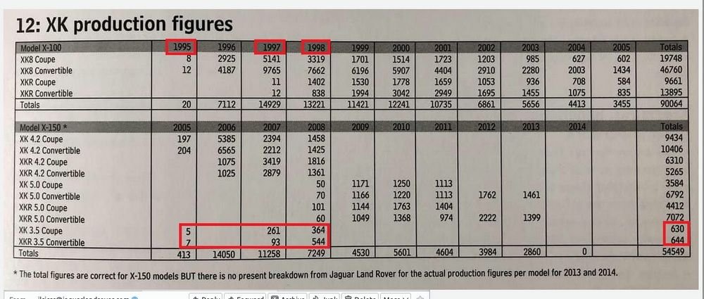 the production numbers are correct but not the production dates you refer to, here is a pic with the production runs of both the X100 XK8/XKR and and the X10 XK/XKR, I'm sure you have seen it before; the XK 3.5L was produced between 2005 and 2008.