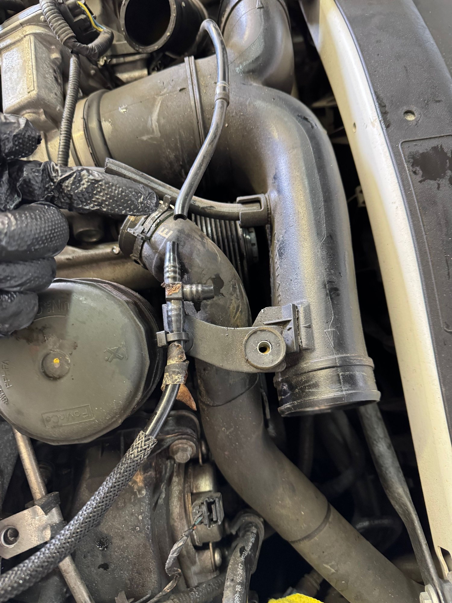 I broke mine there once removing the oil filter cap. I temp repaired it (for three years or more) with a short piece of coolant hose and two worm clamps. Got the final repair done while the coolant lines under the supercharger were replaced.