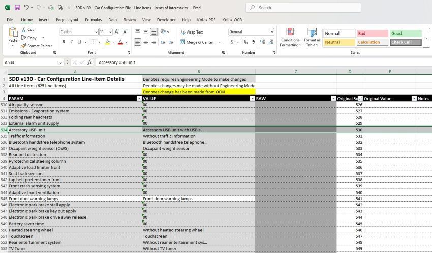 Juss, to get the ‘Portable Audio Interface’ activated in SDD you will need to go into SDD Engineering Mode and turn on the "Accessory USB unit" line item. To see this line item and all others available for modification, refer to my earlier post, "Car Configuration Personalization Parameters in SDD v130", showing all line items in SDD v130. It is SDD line item #530.