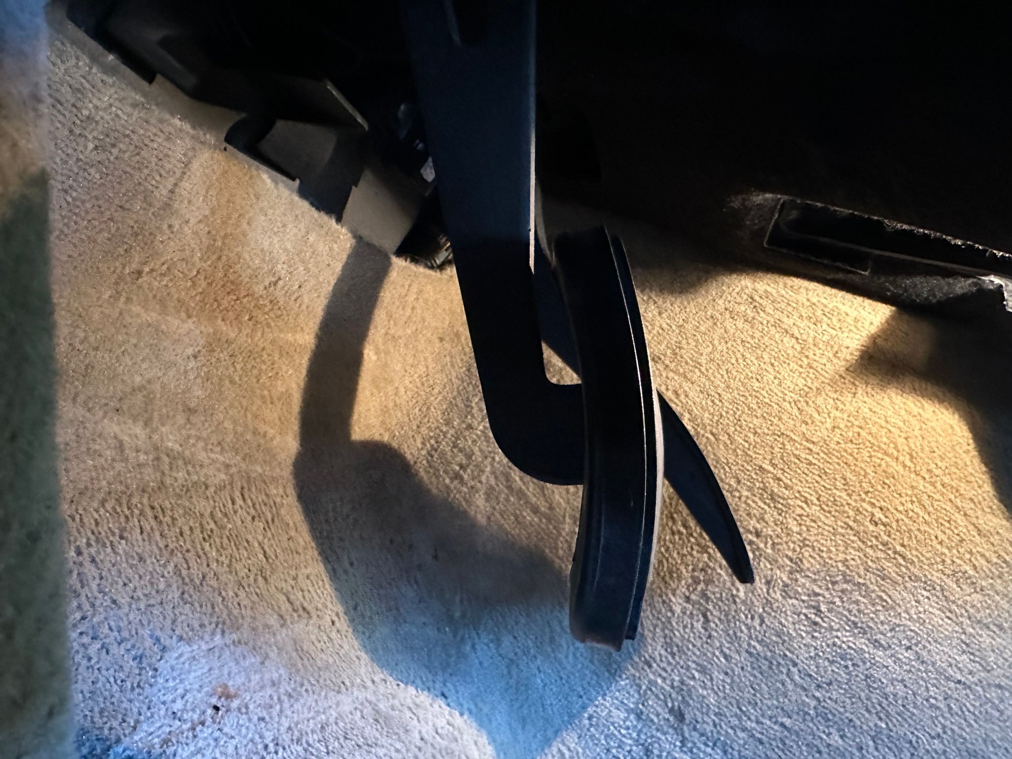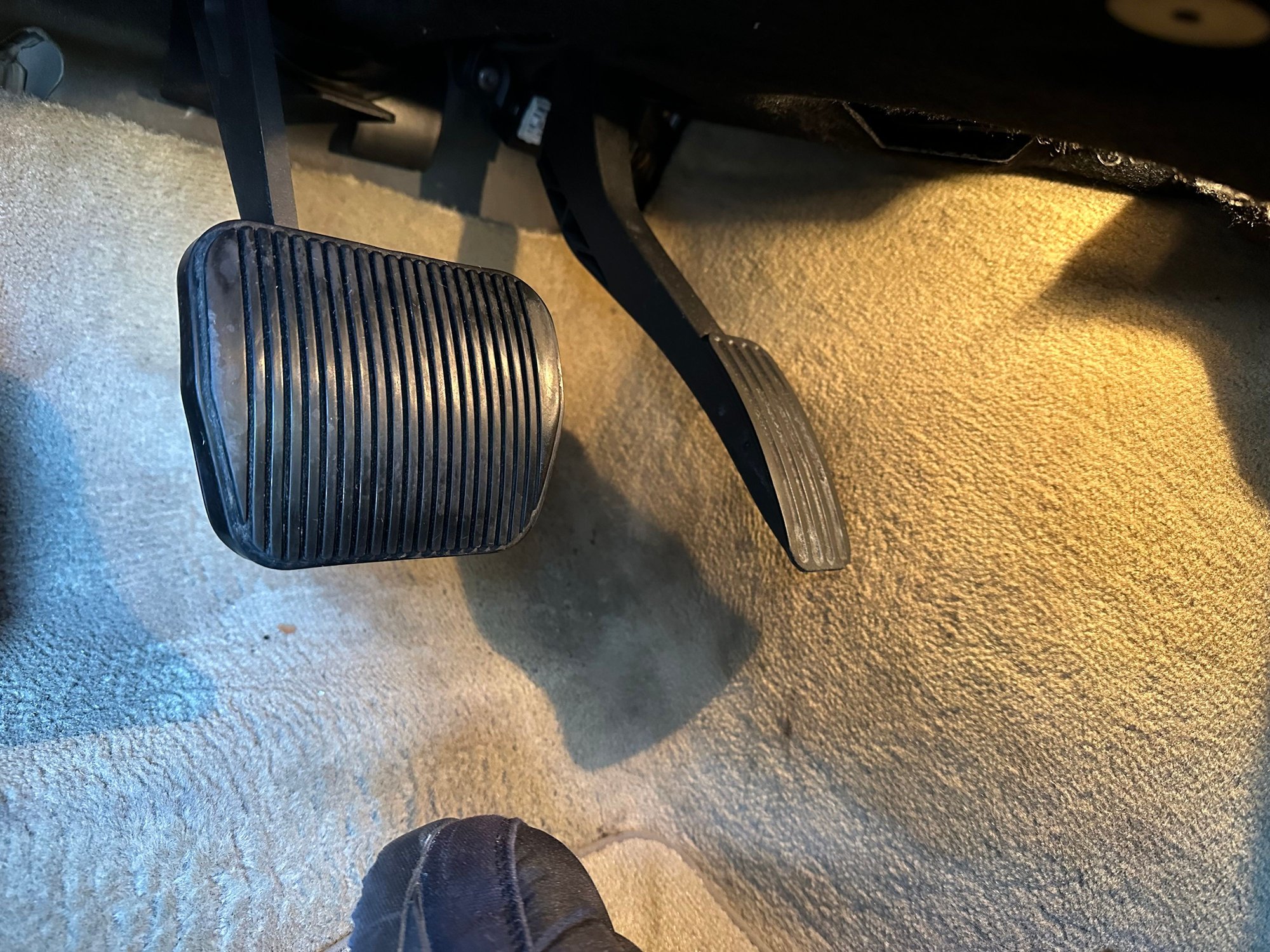 Quick update - I believe someone installed a XJR pedal incorrectly. The tell is the angle of the pedal and the extra material behind the first bend point, as well as the weird offset that gets the pedal closer to the transmission tunnel. New/used gas pedal ordered from eBay.