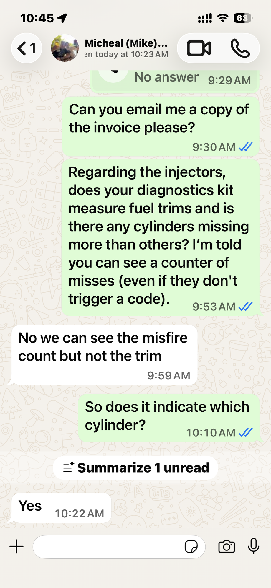 So this is the text string regarding injectors.what questions do I need to ask if any? If they identified which cylinder then why do I need 4 injectors, is that legit?
