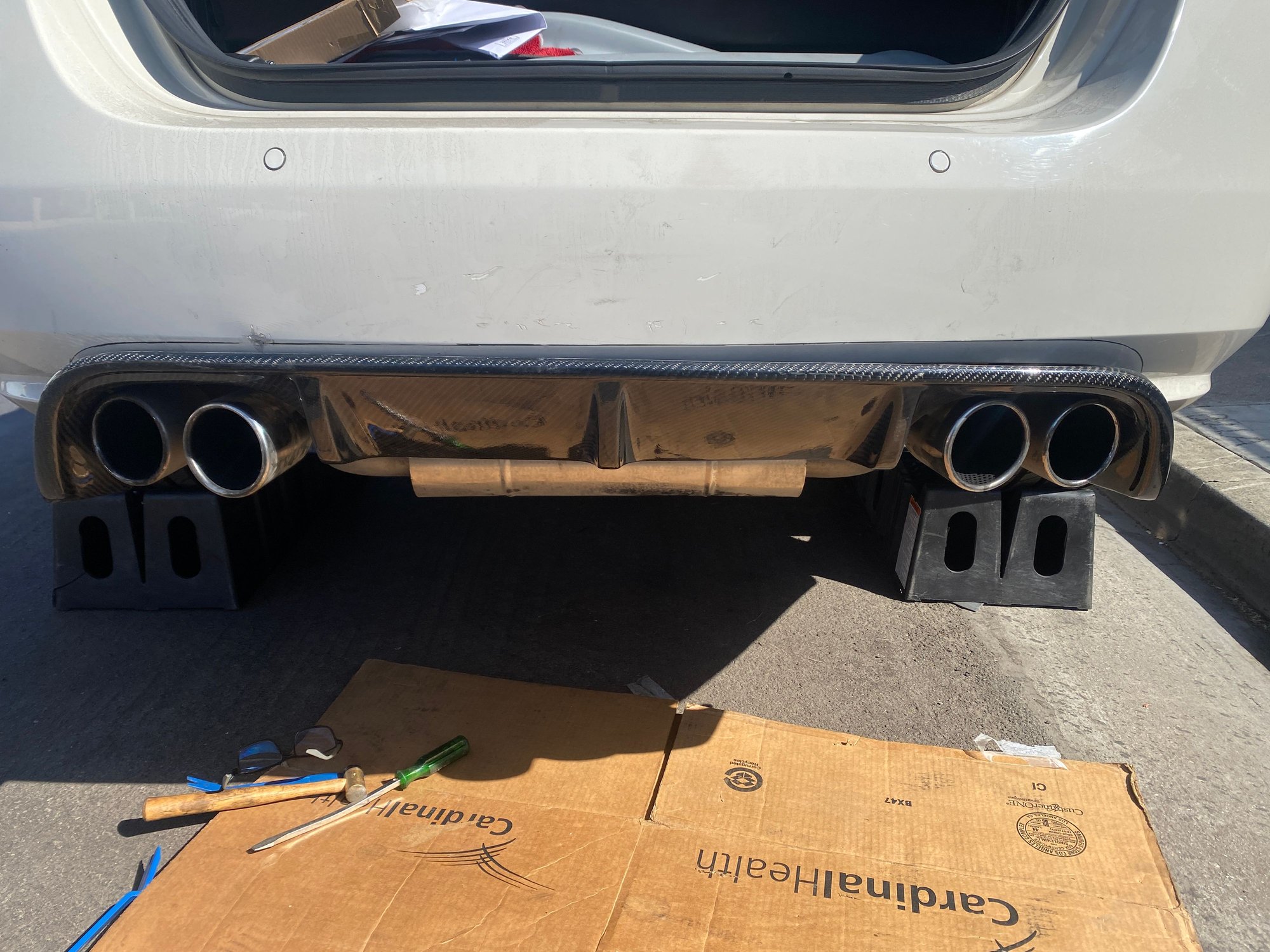 Next project… I bought a carbon fiber rear diffuser from Chris at Mina about 6 years back. I’m just getting around to finally mounting it. The factory diffuser has tabs on the back side that slide into the rear bumper which has corresponding slits/cut outs. Mine does NOT have these attachment tabs. Chris initially suggested using 3M double sided automotive tape. This does not seem sturdy nor permanent. Any collective ideas on how to get this accomplished?