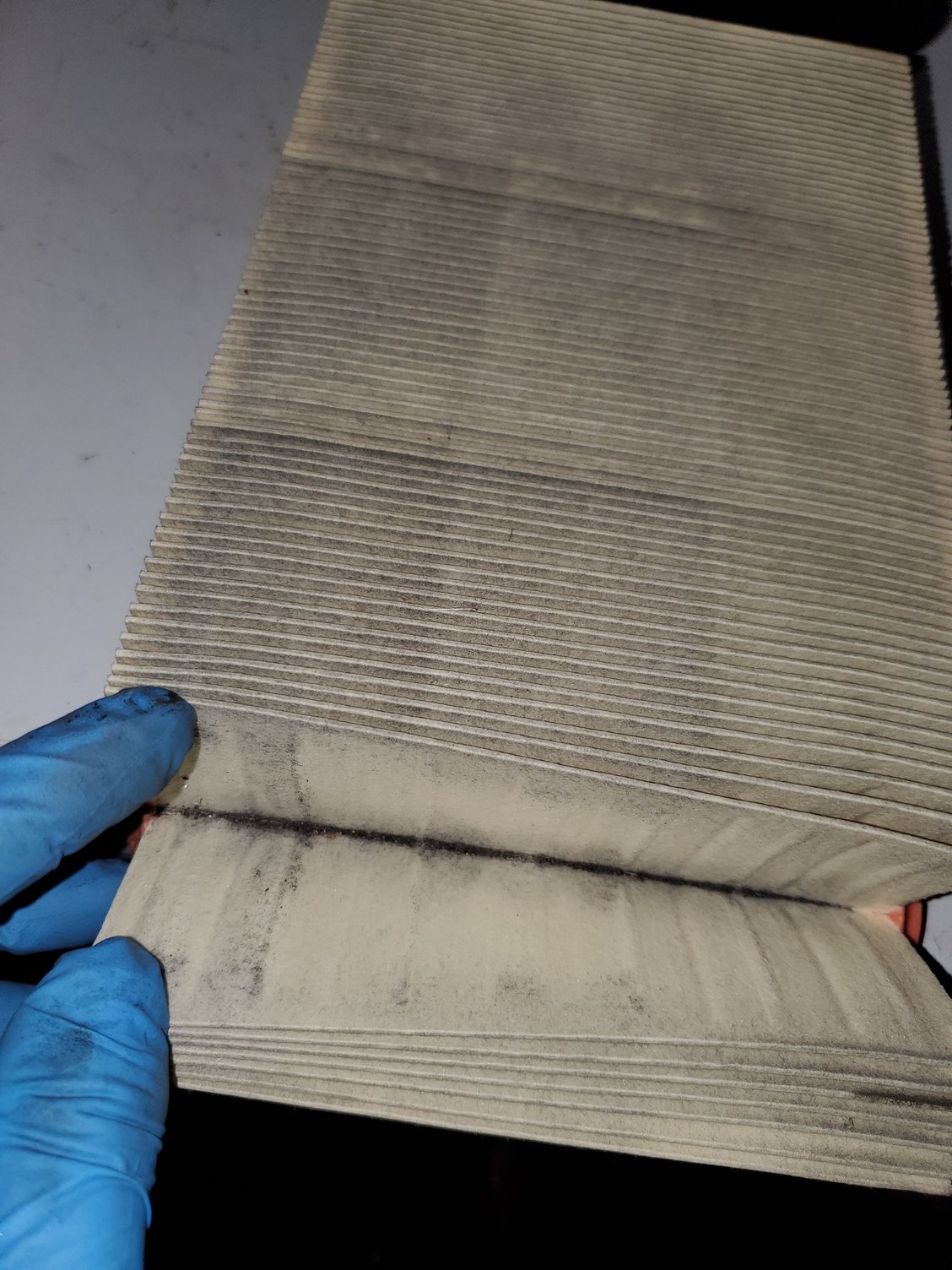 So a customer came in with lean codes that an independent highly regarded Jaguar specialist could not solve. High long term fuel trims P0171 and P0174 plus occasional Maf codes. The shop tried a set of aftermarket Denso compatible MAF units first, after that didn't work they tried OEM from Jaguar dealer MAF sensors, those did not seem to work either. Customer asked me for advice. After running diagnostics on his vehicle I told him that mass airflow sensors are very highly suspect, and told him to go back to the Jaguar specialist to double check everything. So one more time they tackled the problem and managed somewhat to mask it by installing non supercharged MAF units. I checked the vehicle over again, and suspicion I decided to take a look at what's going on. This is what I found,,, lol for anyone that's familiar with this picture, this highly regarded independent Jaguar specialist managed to install airflow director screen backwards, not just once but three times with MAF replacements .. WTF ,😂. Customer was also told that his air filters look brand new 😂. Look at the photo