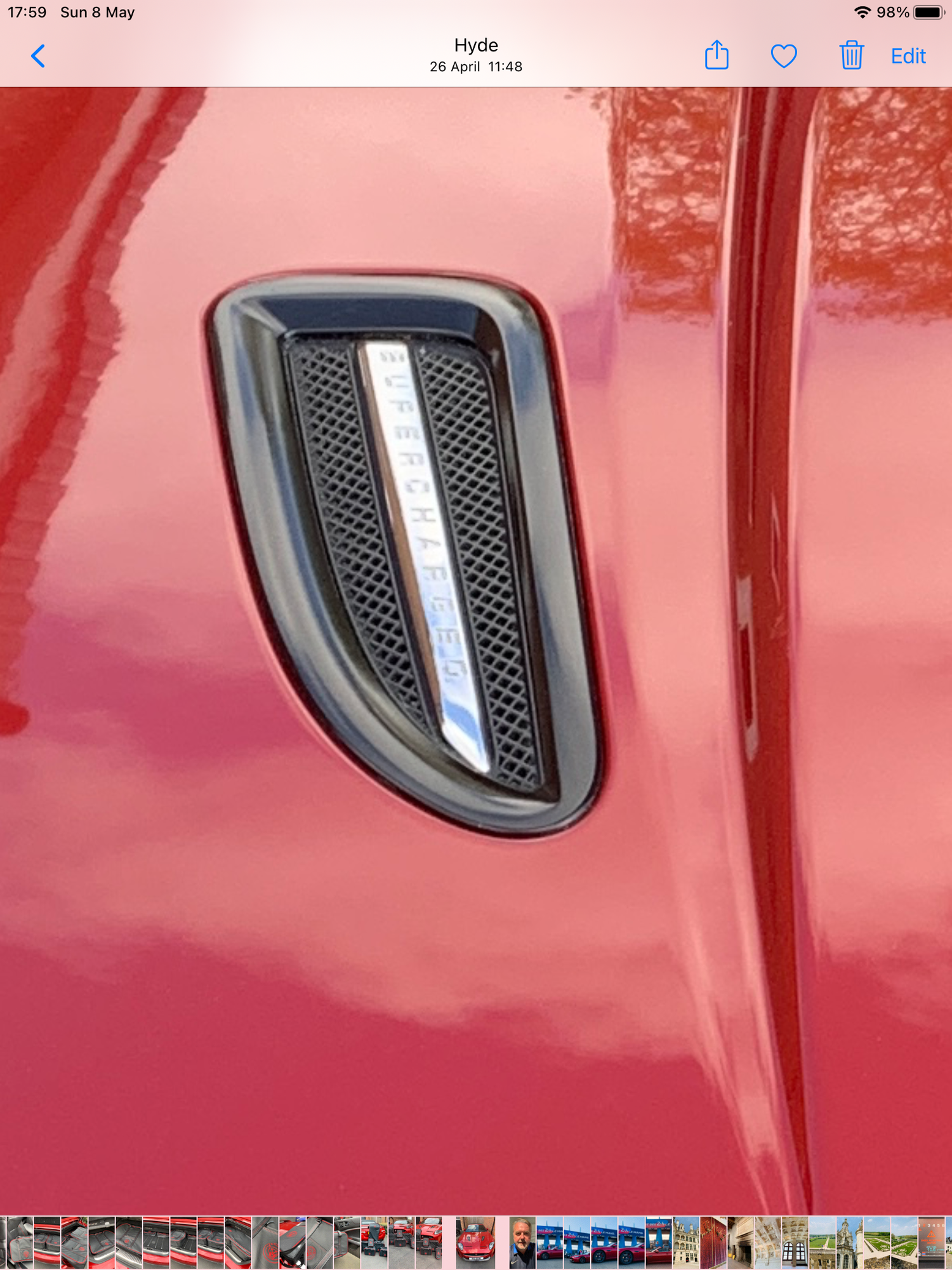 Does anyone know what the bonnet vent design should be for the above. My car has central silvered supercharged logo strips over meshed base with black surrounds however all the reference pictures I can see have fully painted (body colour matching) vents with the supercharged logo to the side and a horizontal bar in the middle of the vent