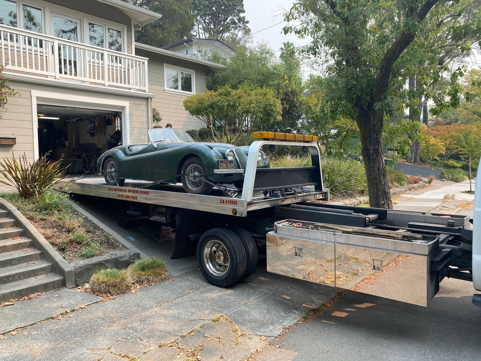 Yay, made it home. My tow driver was a total pro and deposited the car without any issues.