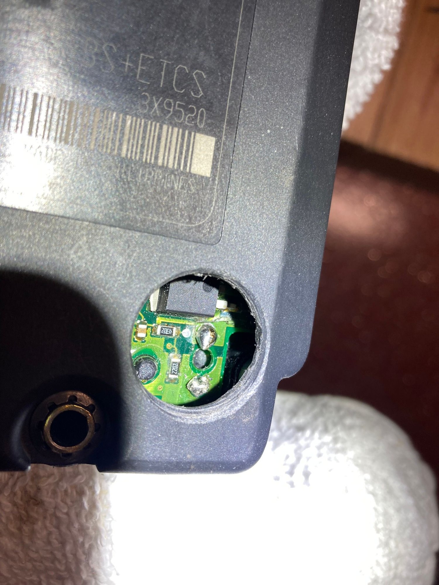 4) Something I did not see mentioned that surprised me was that there was a clear coating covering the computer board. I carefully scraped/cut that off from the area immediately around the two terminals that had to be re-soldered. It could delaminate from a much larger area if you don't cut it where you want.