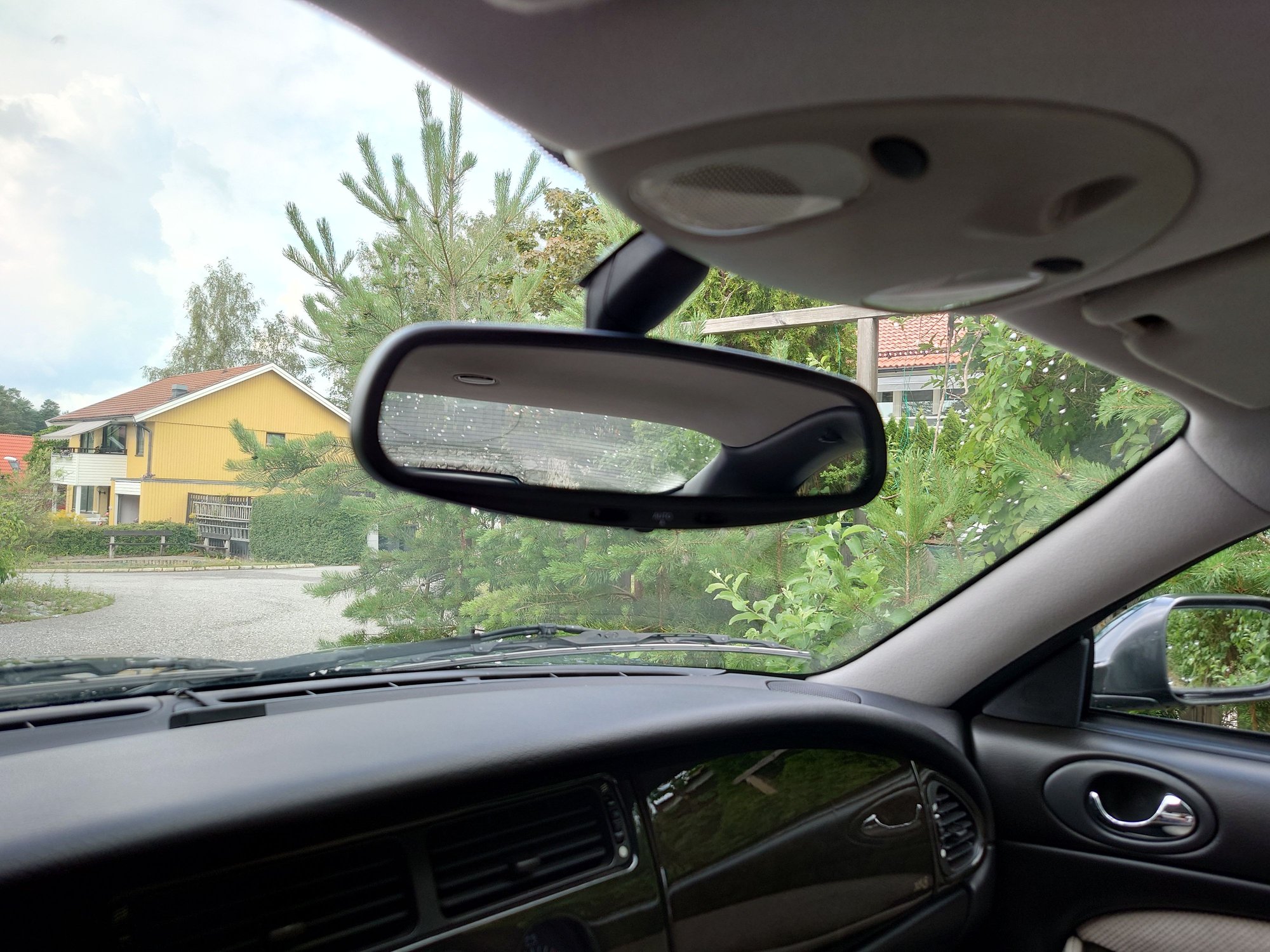 2. Remove the rear view mirror. Removing the little plastic cover near the top, the mirror slides off downwards, parallel to the windscreen. I didn't use a mallet, or any screwdrivers - I merely applied a moderate some light force while wiggling the fixing ever so slightly side to side. Your mileage may vary. I have a poverty-spec car so no rain sensor or other fancy stuff to consider.