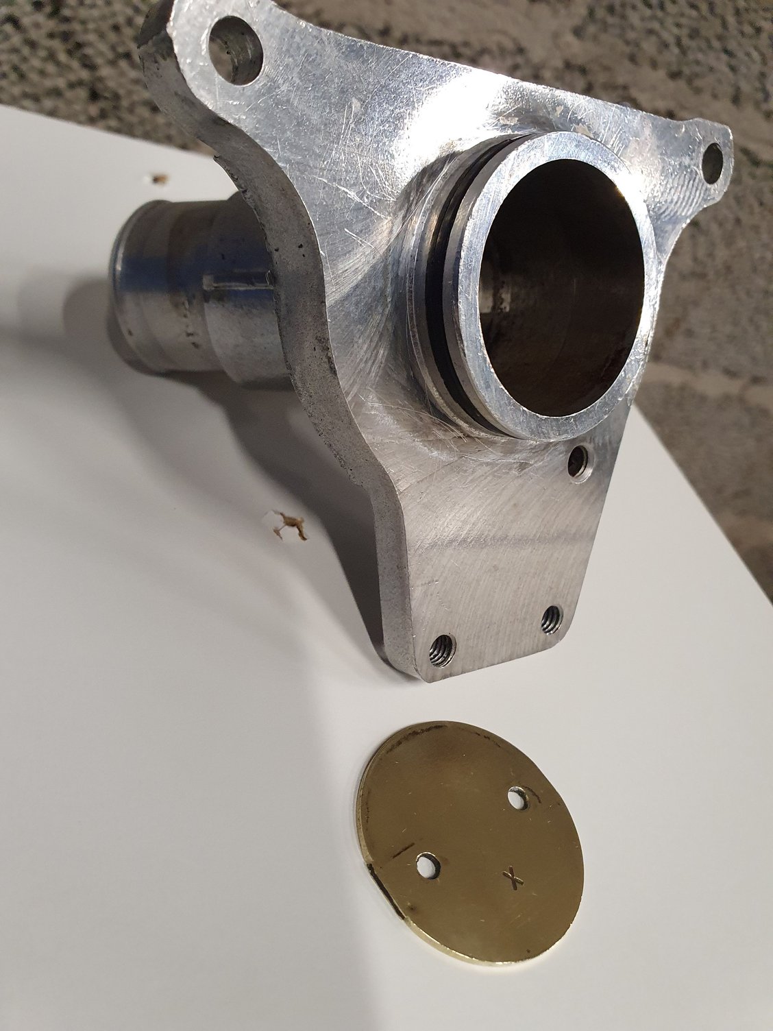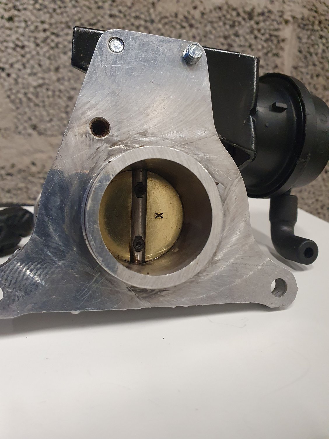 Cleaning the internals of the butterfly by-pass valve for the Supercharger, very dirty inside. When having got the components fairly clean I spot a "X" mark on the brass valve itself that I didn't spot before removing the valve. As far as I can tell the valve seems to be perfectly symmetric the X aside. Anyone who knows if the X should be pointing towards the single tube side or the double tube side of the valve assembly?