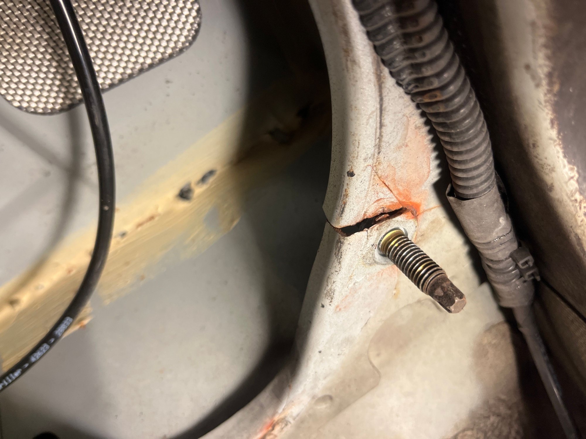 When I was ready to put everything back in place I encountered an Eldritch nightmare. The metal around some of the studs fatigued and cracked.