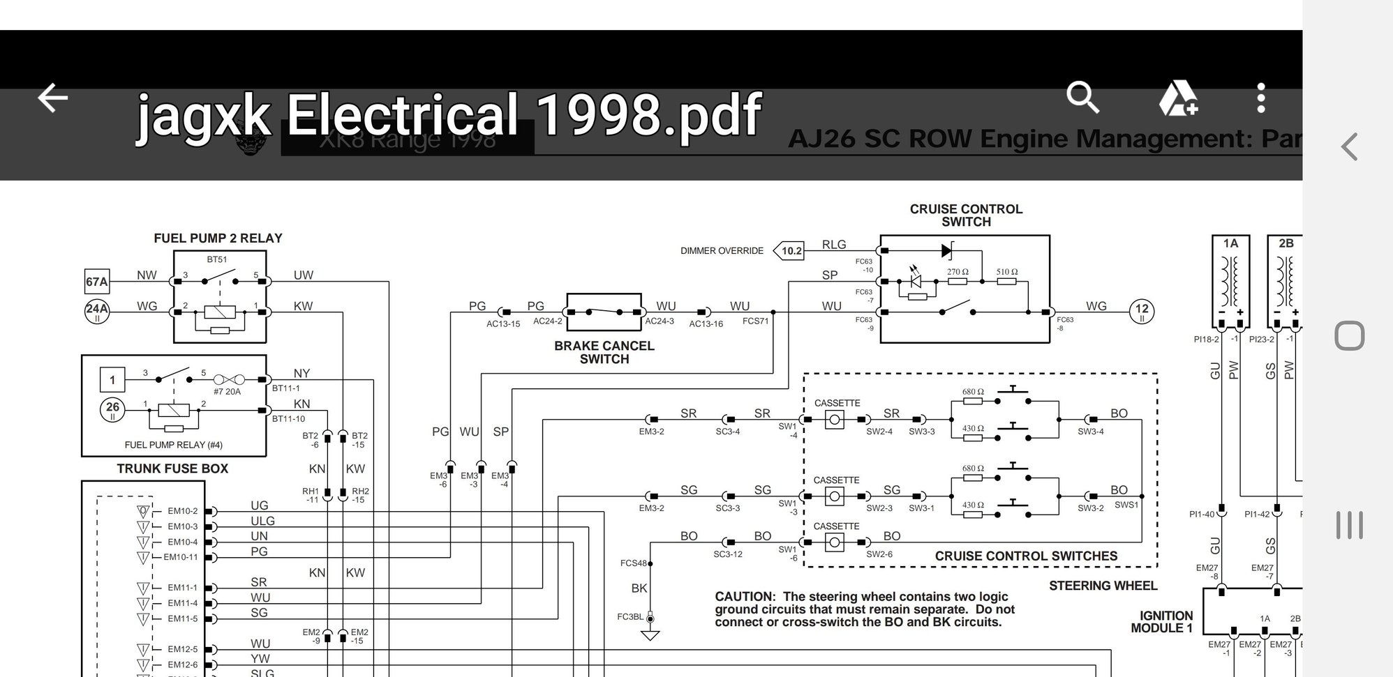 Title says it all, just wondering if anyone else has had a similar issue. I have enjoyed a trouble free couple of months with the 02 XKR until after a drive and stop at the market I left the cruise control button on the shift gate in the up or "on" position when parked. When i came out of the store about 30 minutes later the car would not turn over. A check with the volt meter (yes i still carry my volt meter and some other basic diagnostic tools with me in the trunk) showed that the battery voltage had dropped to 12.2V. A jump start from a buddy who lives close by was good to get me started again. I confirmed that the charging system was functioning normally when the engine is running. A driveway test the next day confirmed it is the cruise control draining the battery when left on and with the engine off. I haven't begun the process of tracing out the circuit or actually measuring the voltage drop, i will have some time to dig into it this weekend. I just thought that i would ask around to see if anyone here had experienced a similar problem.