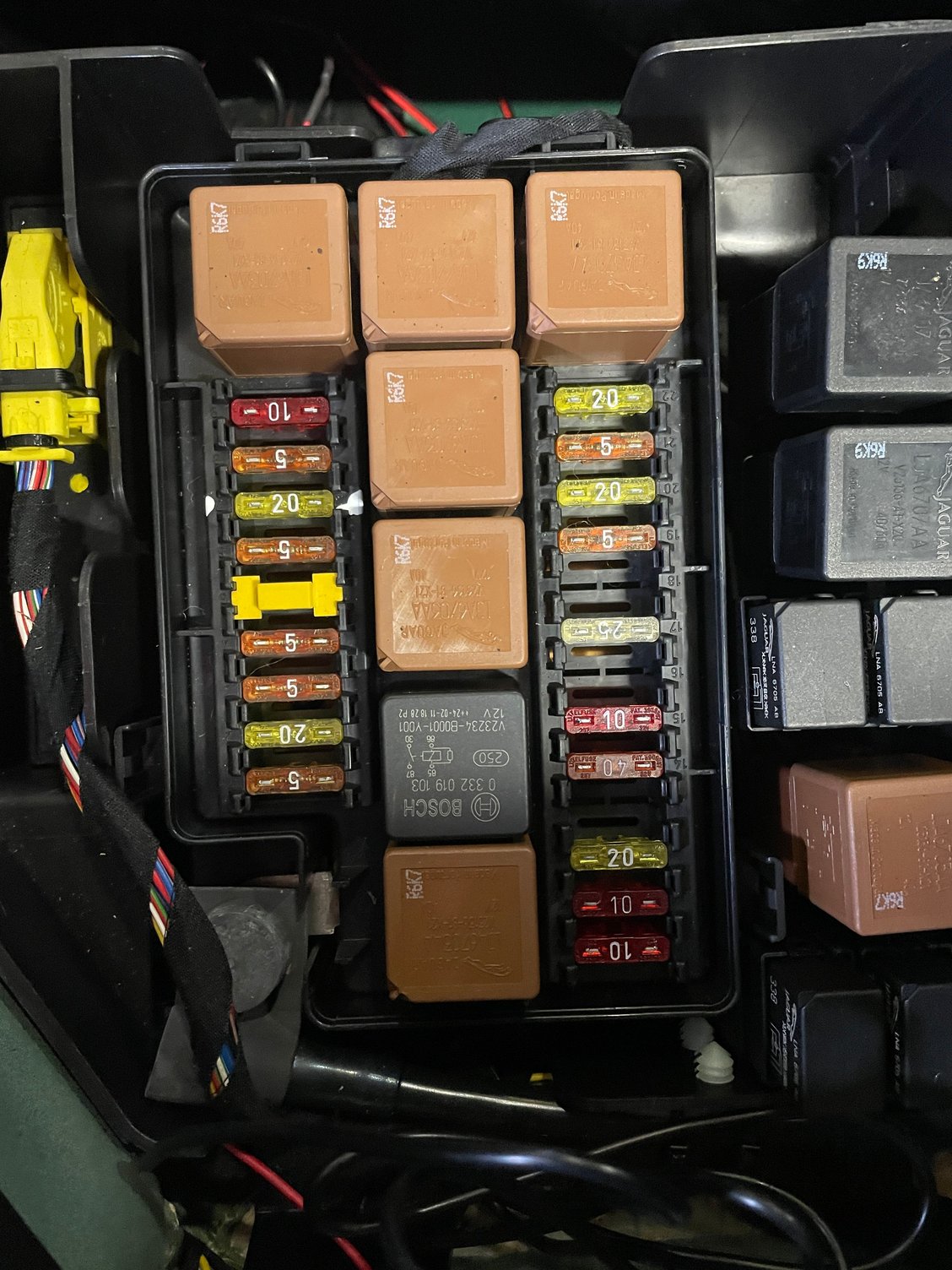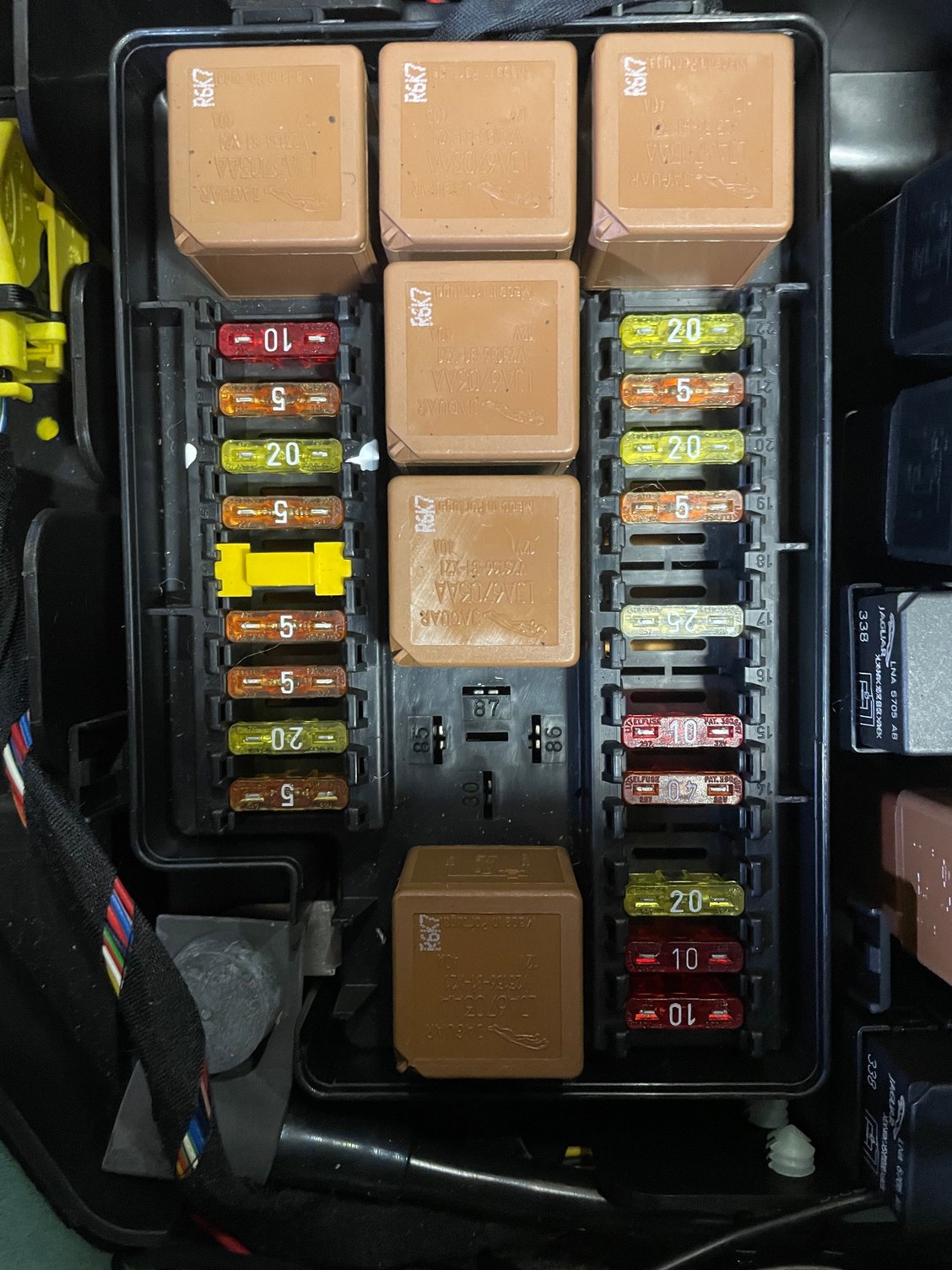 Luggage compartment fuse box showing the space for the relay.