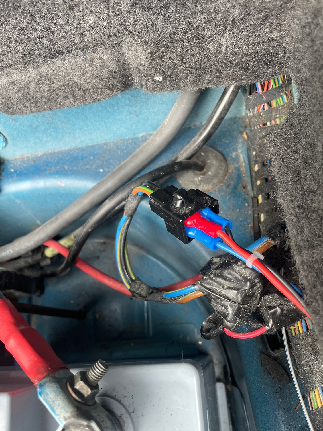 The relay installed in the luggage compartment fuse box. Note you may also need to put a 10A fuse in slot 17 in the same fuse box