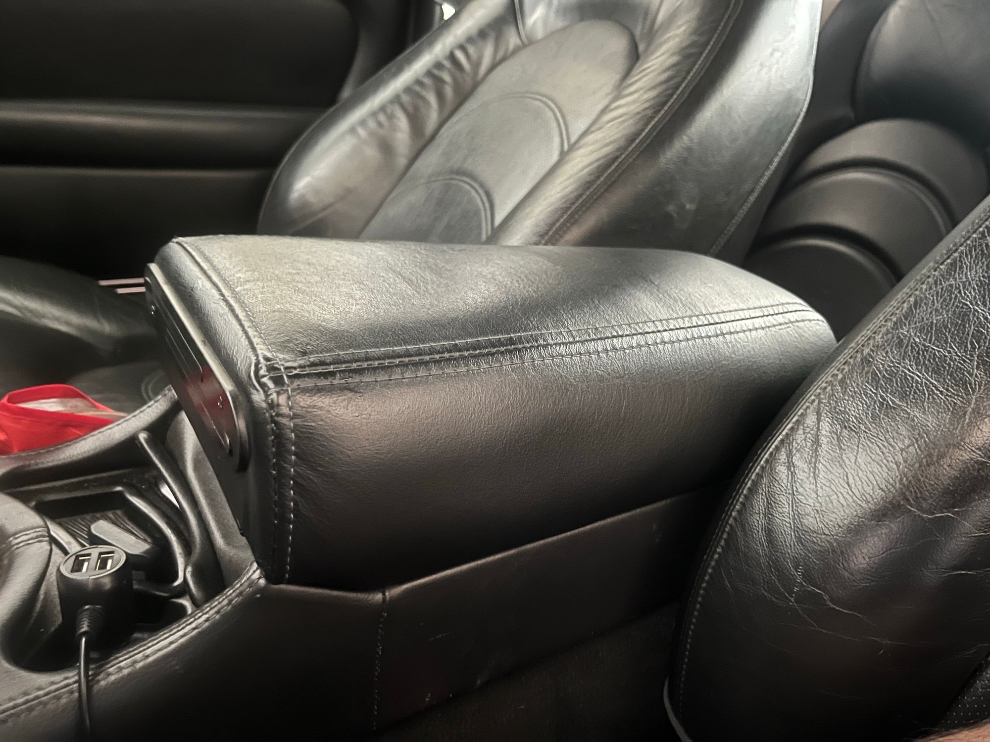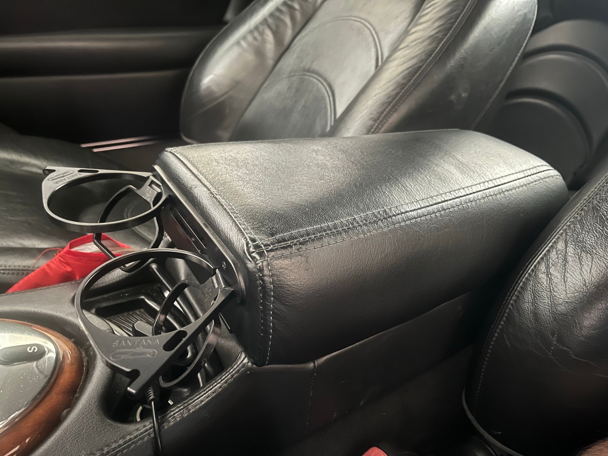 Then I found a unicorn on eBay. An XJ40-style magnetic armrest that had been modified with metal cupholders that hide inside the armrest. That solves both problems. I no longer have to deal with drinks that fly into the backseat as I accelerate, nor do I have to put up with the noisy armrest. I did find that this modified armrest does have one issue. The leather at the corner is folded in such a way that the magnets don't contact each other to provide "latching" action. No problem, I added some smaller magnets I had lying around. Eventually, I plan to remove those rivets and add some washers to shim the metal bar just enough to allow the magnets to contact each other without the auxiliary magnets.
