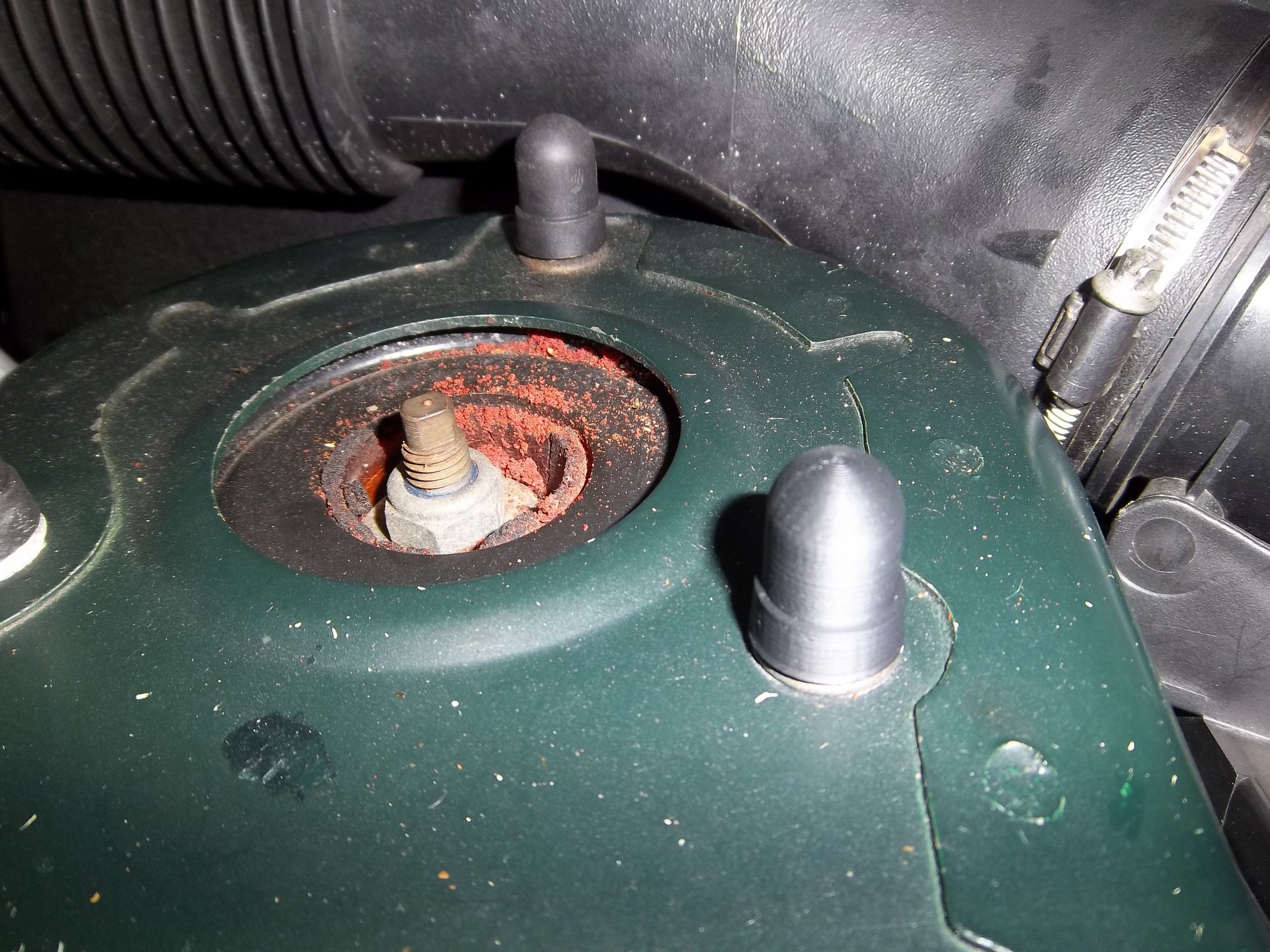 To anyone interested, we're also planning on making some upper strut attachment nut/bolt covers, if there is any interest. The prototype is at the front right, while an original is at the rear center. Slight differences, hard to get the design perfect using the 3D printer. I can't find these too easily. Please PM me if interested. Not sure about a price yet, but should be reasonable. I'm looking for two of the large center caps, as you can see! Previous owner just threw away any part on the car that wasn't welded on, evidently.