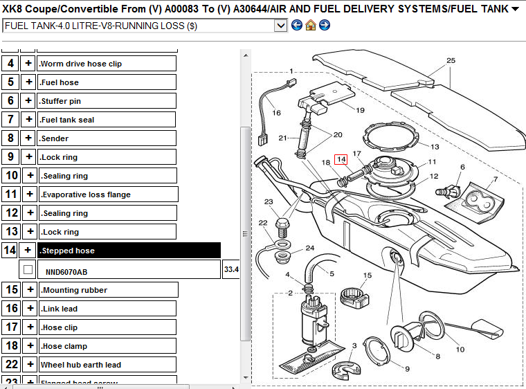 I am replacing my fuel pump in a 2000 XK8 and need the short rubber hose connection that is larger on one end than the other. Any ideas on where I can find this part?