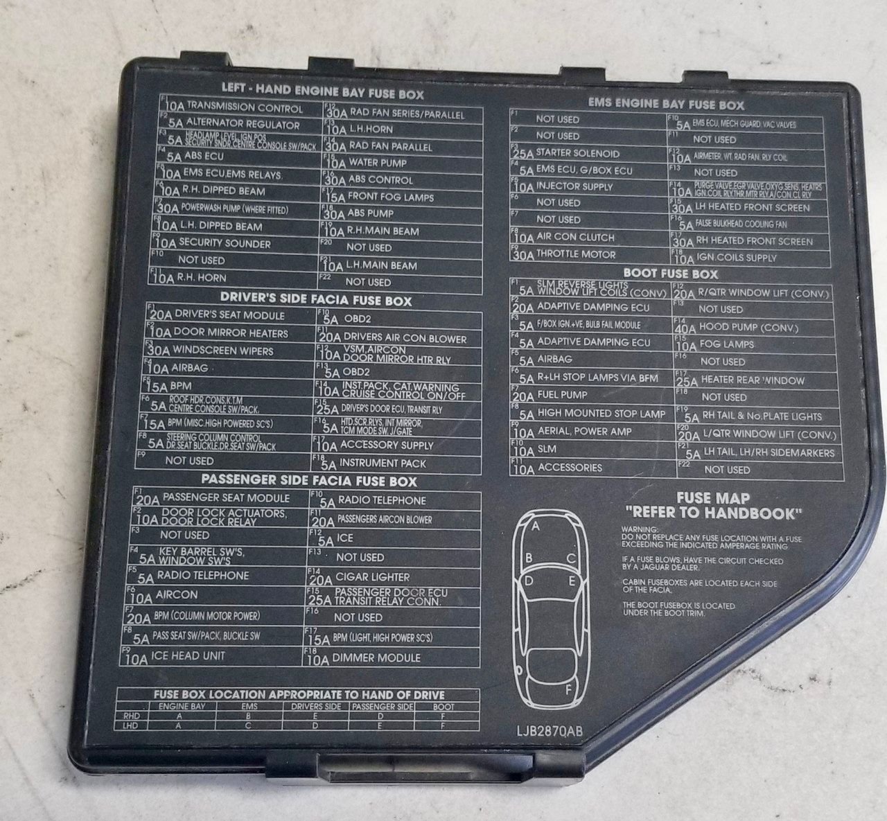 I looked at the photo I took of my 2004 xkr drivers fascia fuse box and the amperages are different from those in the 2001 and 2002 XK8. If you scroll down from the top LH side of the fuse box, the amps on my 2004 are: 20,10,5,10,25,5,10,10. then on the RH sdie of the fuse box they are: 20,10,30,5,15,5,15,10.