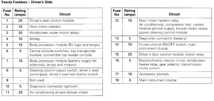 I can find lists of what fuse controls what, but where a specific fuse is located must be some common Jaguar knowledge I don't possess. I have the 1999XK8workshop manual and the 1997XK8Wiring manuals, but don't see an Enigma code key to decipher which fuse is #12 etc.