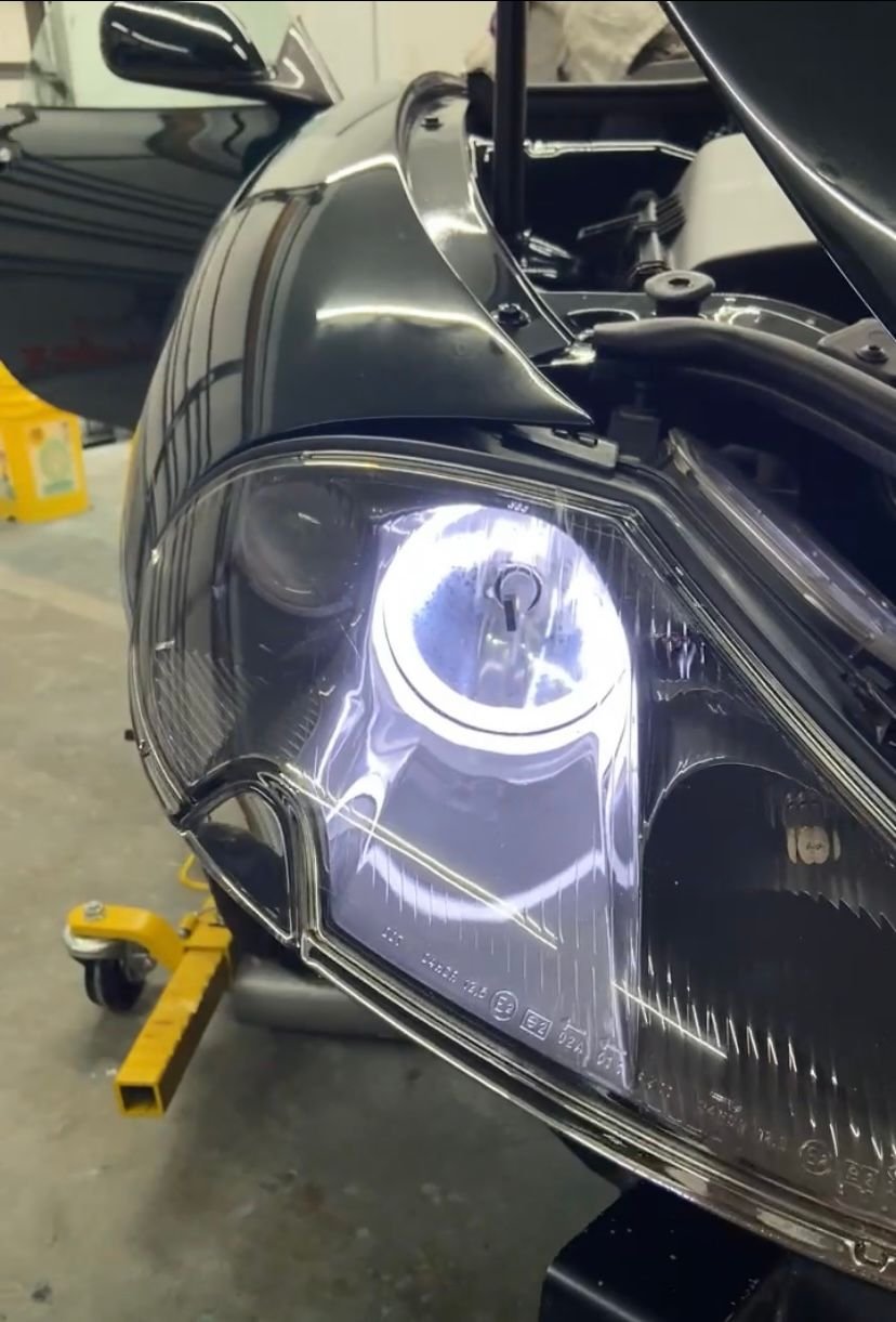 When I resprayed my ‘97, I took apart the headlights, heated the lens with a heat gun, and separated the glass. This gave me access to remove the failing chrome finish. Came off easily with lacquer thinner, but be careful as it dries out the plastic easily. Then I sprayed adhesion promoter, primer, dorchester gray base coat, and some clear coat. The results look amazing. It isn’t a full “blackout” look, but gives the headlights a darker, more modern look while appearing very OEM.